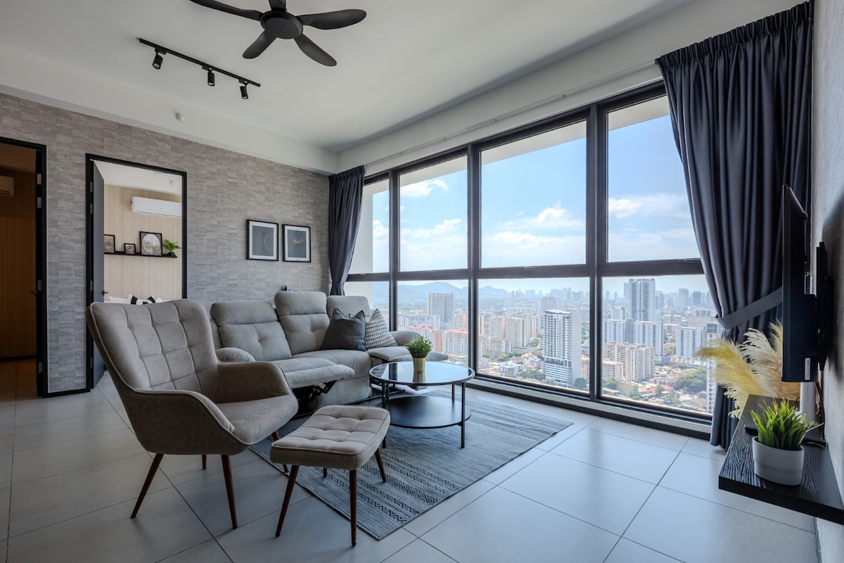 *檳城的最佳位置,新關仔角,第一旅遊目的地 *一個雙層角落單位 *令人驚嘆的高樓層日出海景 *日本設計師設定,配備全套設施 *智慧電視 * 100Mbps WIFI *在臥室、客廳和餐廳欣賞令人驚嘆的日出 *周圍有酒店、購物中心和各種當地餐廳 *免費1個室內停車場 *設施包括室內泳池、健身室和天空休息室 *放鬆的海濱漫步