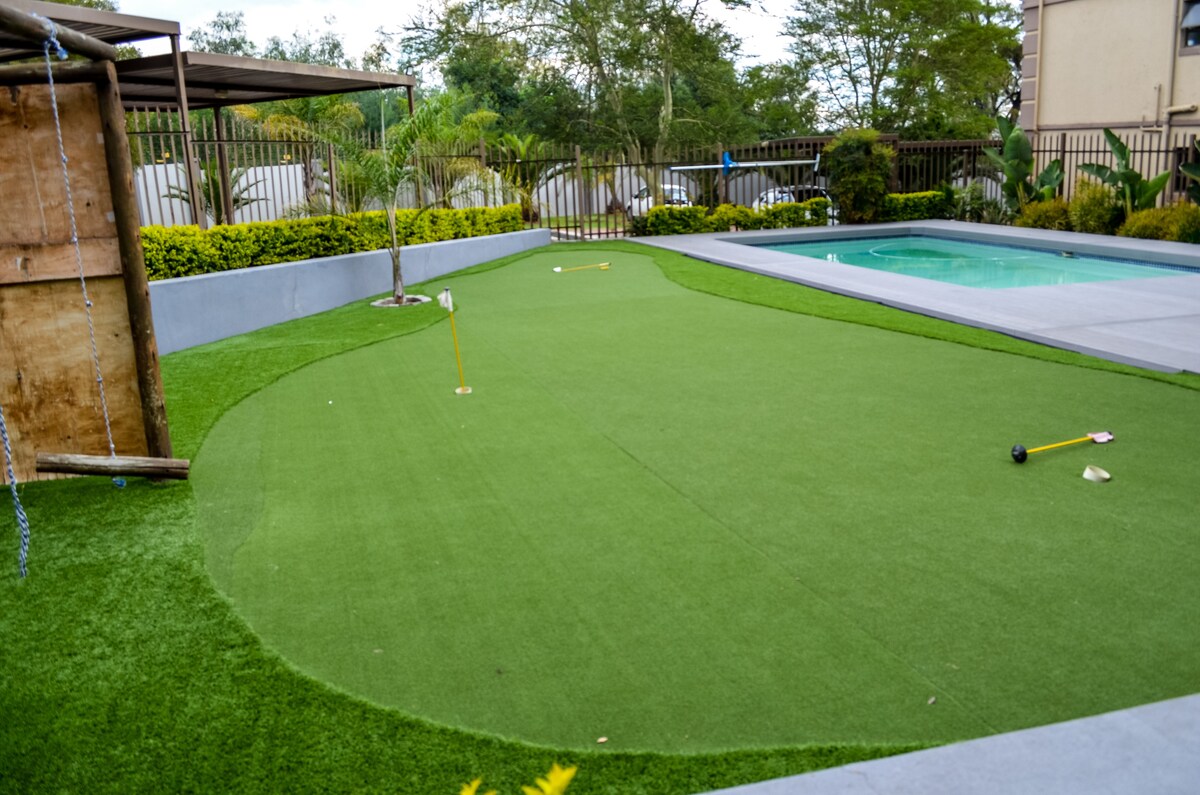Fully furnished modern, self catering secure and fully equipped private studio apartment, with solar power, so you will not be affected by power outages! Situated in a quiet safe neighborhood, close to all major shopping malls and entertainment areas. The space is safe, calm and stylish, newly renovated and perfect for business persons or travelling couples. Please note that this apartment is strictly no smoking. There are very friendly dogs on the property which love to greet guests on arrival.