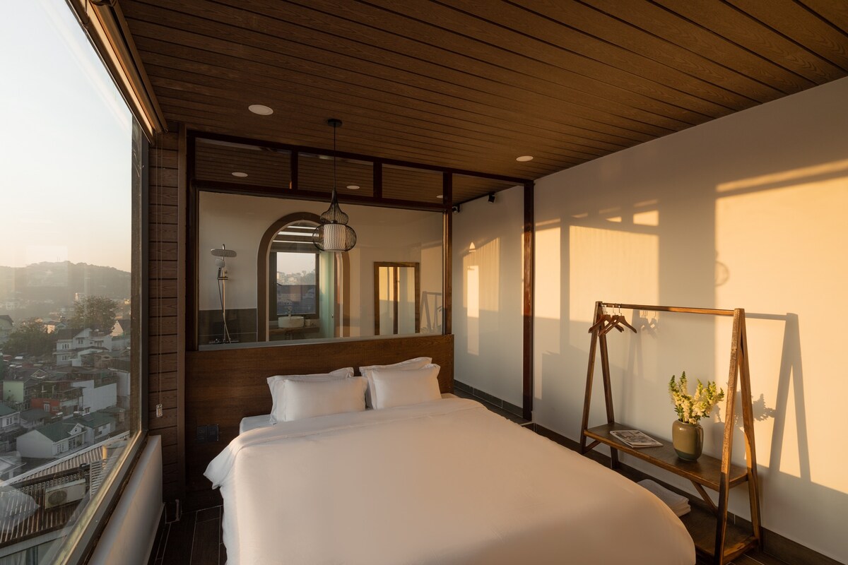 🌲 Chào mừng bạn đến với Penthouse Retreat – Stardome Dalat! Tọa lạc ở tầng cao nhất của khu nhà, căn hộ mang đến không gian riêng tư tuyệt đối, đầy đủ tiện nghi và view rừng thông thơ mộng. ✨ • Bồn tắm kính thư giãn ngắm rừng từ phòng tắm • Bếp riêng xinh xắn, bàn ăn gỗ ấm cúng • TV lớn, tài khoản Netflix, wifi mạnh • Bãi đậu ô tô miễn phí • Diện tích: 70m² – phù hợp 2–4 khách 👉 Lưu ý: Vì Penthouse nằm trên áp mái nên sẽ đi thang máy lên tầng 4 và cần đi bộ lên cầu thang 1 tầng.