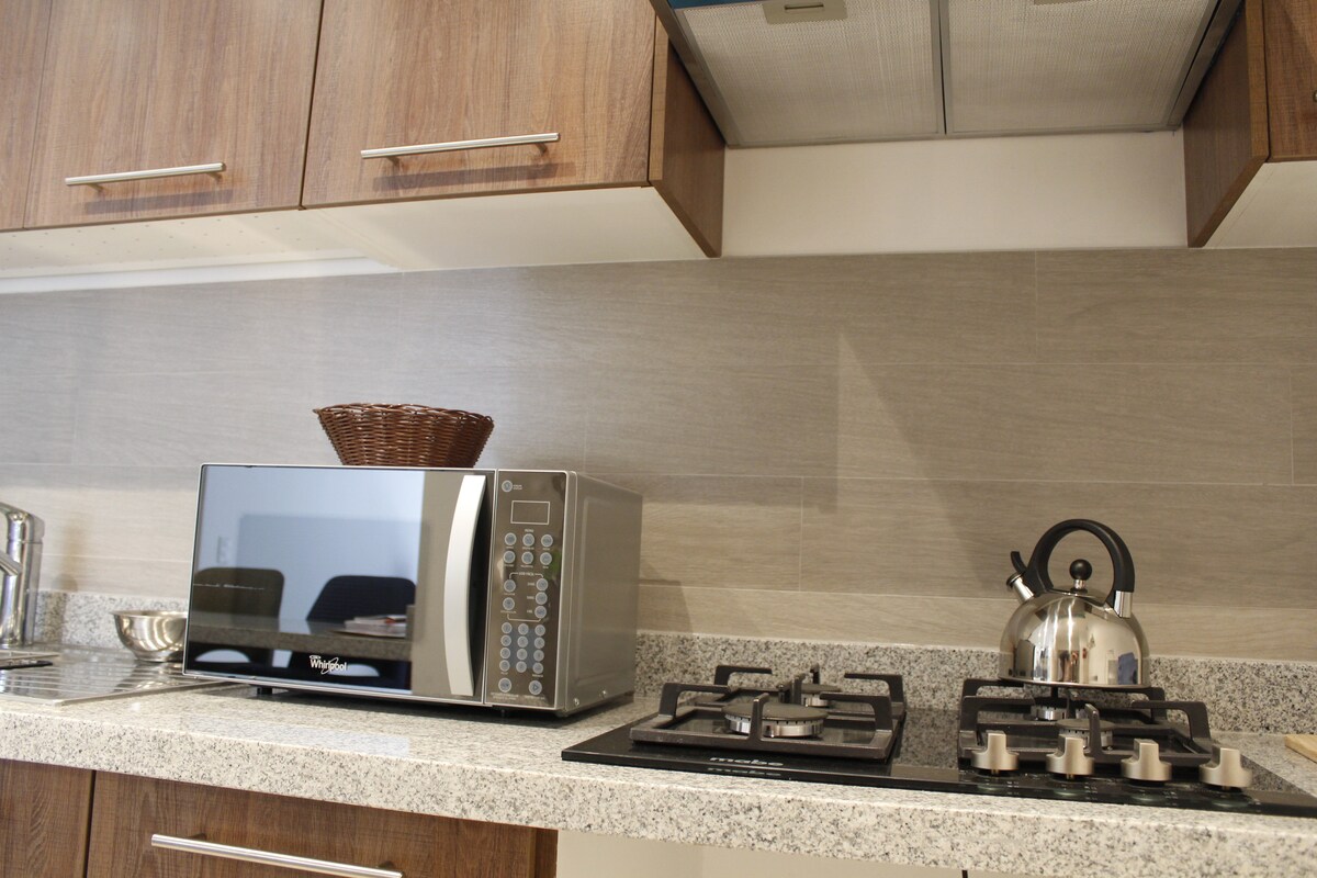 現代風格...廚房電器、自動遮光窗簾、豪華室內裝潢。非常舒適。 503是為品味卓越的客戶設計的,價格實惠。配備短期或長期住宿所需的一切設備。地理位置獨特,可讓您非常靠近基多的主要景點。購物、晚餐、運動、體育。等等。你一定會喜歡的!