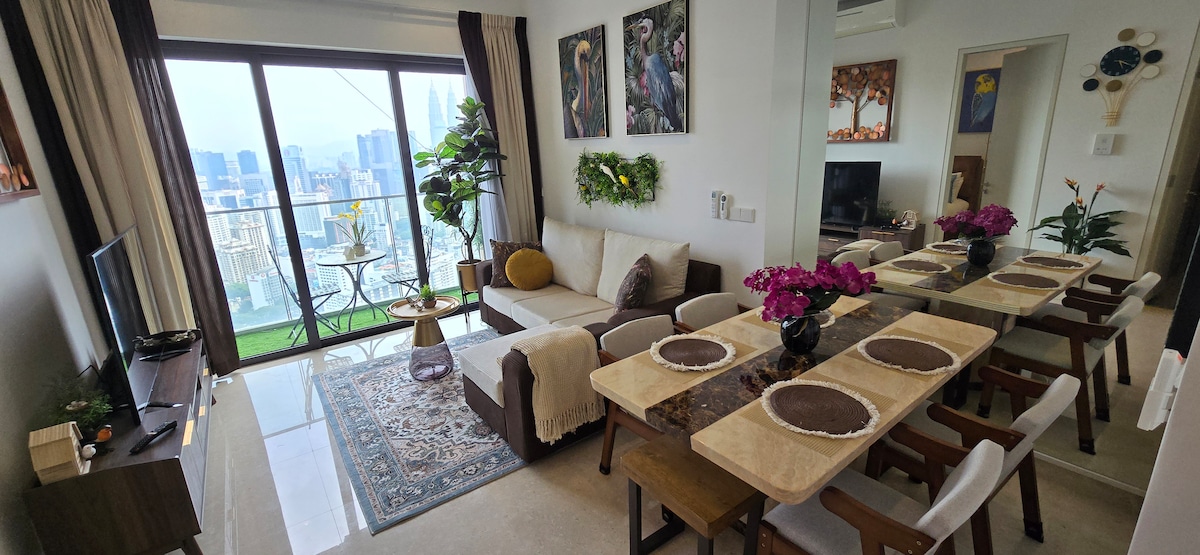 歡迎來到吉隆坡!將窗簾拉回來,讓光線在白天透過落地窗戶照進來,在天黑後享受閃耀的城市光線。 這個可愛的房源設計創意十足,屋頂有著名的無邊泳池,可欣賞驚人的雙子塔和吉隆坡城市景觀。 地理位置優越,設備一流;位於繁華城市中心的寬敞、維護良好和家庭友好的房源。:)