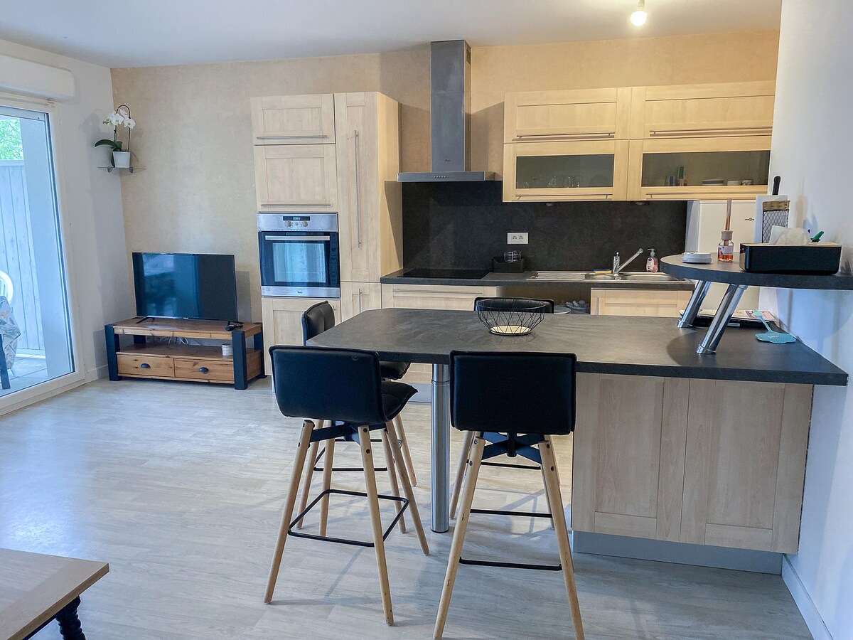 這間單間公寓與我們的房子相鄰。位於鄉村安靜的區域,距離市鎮(大型超市和所有商店)5分鐘,距離瓦內斯 (Vannes) 10分鐘,距離海灘和莫爾比漢灣 (Golfe du Morbihan) 20分鐘。 床是一張沙發床,配有優質床墊。提供床單和毛巾。 露台、花園沙發、兩張日光浴床和一個烤肉架,全都供您使用。還有一個停車位。 該地區有很多景點值得一遊! 期待很快再見
