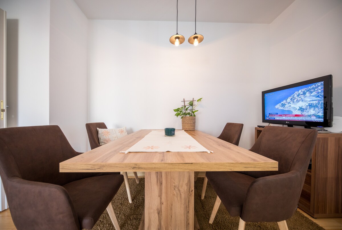 在這個安靜、明亮又陽光充足的地方好好放鬆身心。這間公寓位於市中心,但僻靜,步行10分鐘即可抵達美麗的杜布羅夫尼克舊市中心。 非常適合一至兩人度假或尋找完美的工作度假。步行即可抵達商店、酒吧、海灘和餐廳。公寓最近剛翻新,設備齊全,可欣賞地平線和亞得里亞海的迷人景色。