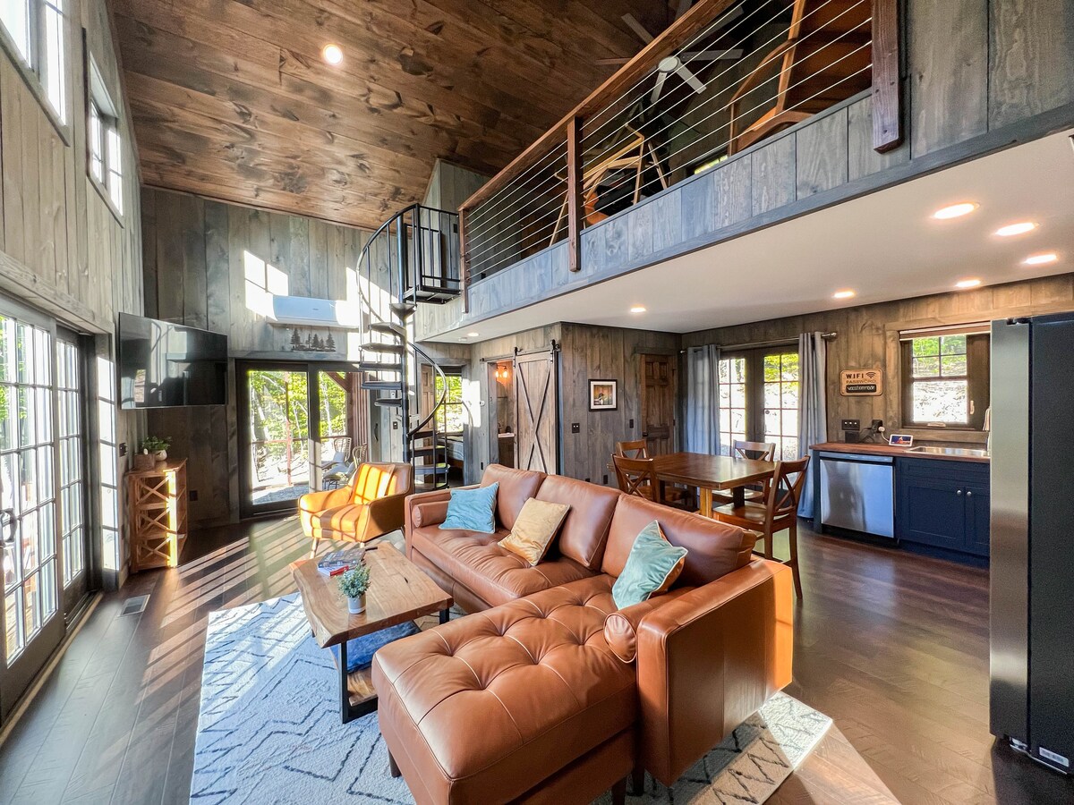 我們建造了Wren小木屋,是一個充滿光線和藝術和許多舒適細節的寧靜空間。 閣樓天花板、螺旋樓梯和大型開放式概念,配有閣樓臥室。 小木屋還有一個華麗的柴火桑拿房,適合那些寒冷的日子。 Wren小木屋有一個放鬆的大型環繞式甲板和室外火坑,以及通往亞當斯池塘的共用通道。 這個空間是現代化的斯堪的納維亞風格,光線充足,充滿貼心的細節。
