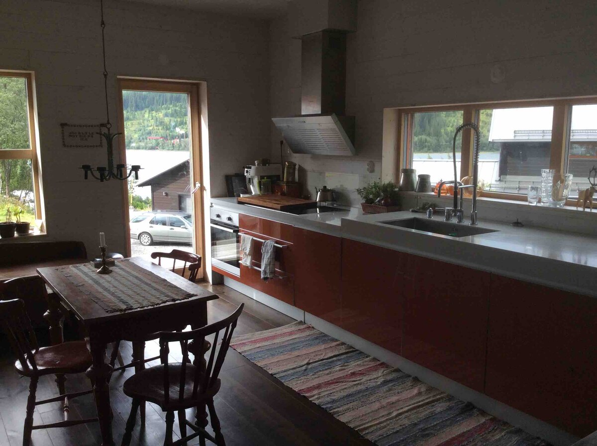 這是一棟舒適的現代房屋,坐落在大自然中,可俯瞰美麗平靜的Luleälv河。 全景窗戶,可欣賞美景的大露臺,光線充足。 安靜美麗的區域,距離高山不到1小時,開車10分鐘即可抵達商店。 非常私密,非常適合自然短途旅行、皮劃艇、滑雪、越野或Slalom ,或者只是在大自然中放鬆身心,享受野生動物和大自然。 這是一個孩子的夢想,也很安全,也非常適合乖狗狗。