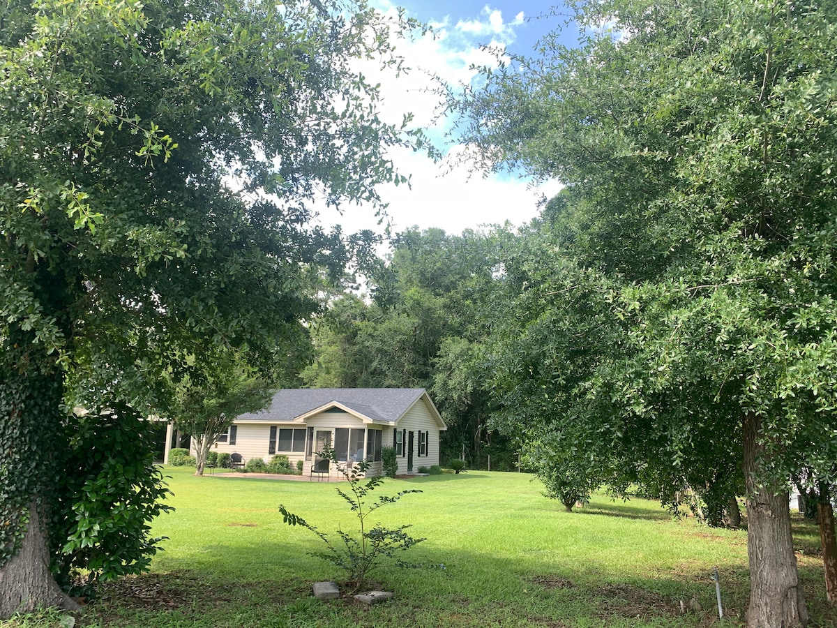 Awaken on the banks of the Savannah River w/ views, song birds & morning coffee! Enjoy the 2x decks, full wall glass doors, metal roof rain, 2 acres strung w/ Spanish moss & relaxing in the sun as the water hits the docks! Bring a book, fish, or hike! Enjoy breakfast, gas BBQ, firepit, screened porch+fans, fast wifi & SmartTV! 2023 renovated & travel magazine featured! Near Savannah, Hilton Head, I95 & airport! This adorable, smaller cottage is perfect for special occasions or getting away!