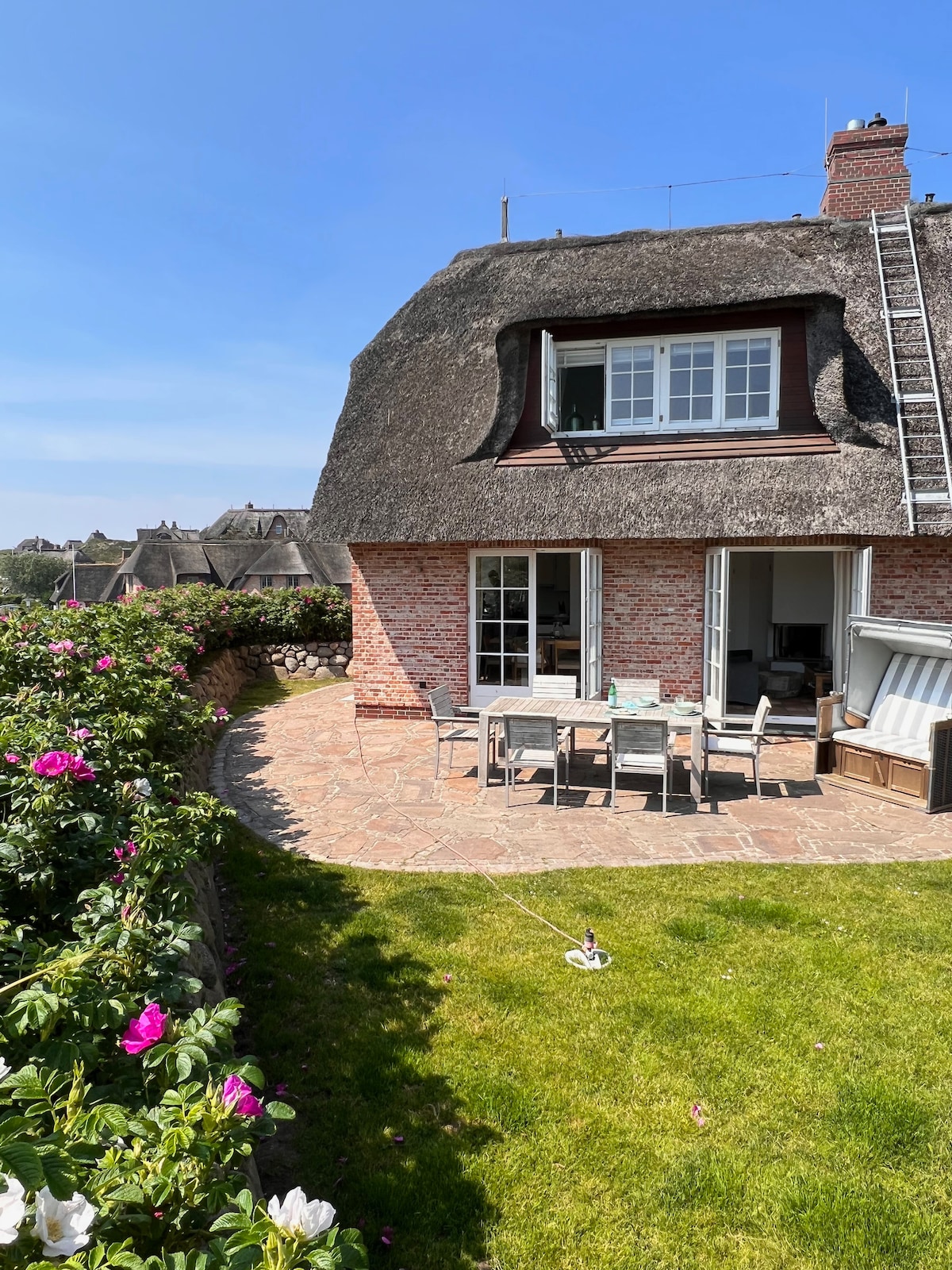 豪華-在這個住宅單位,閣樓一詞明顯適用-寬敞的房間和充足的自由空間。 睡眠區域之間是起居區域-廚房、餐桌、休息室、朝南的陽臺、瑜伽區域、瑜伽區域、電視、洗衣機和烘乾機,公寓總面積超過70平方米,面積超過140平方米。 這裡的一切都比Sylt平常略大。 您可以通過樓梯或電梯到達上層的公寓。 歡迎來到韋斯特蘭的中心!