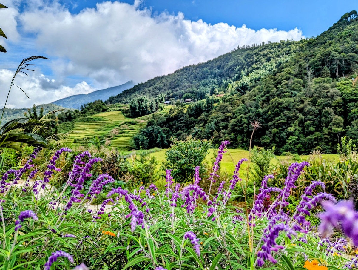 Welcome to Sapaxa View Spring Garden Ecolodge in Ta Phin village! Experience stunning terraced rice field views from the balcony. Our eco-friendly retreat offers rooms for solo travelers, couples, families, and groups. Immerse yourself in nature with trekking, herbal bathtub experiences, and strawberry picking. Enjoy free Wi-Fi throughout the property, scooter rentals on-site, and let us assist with Fansipan cable car tickets, tours, buses, and more. Your perfect getaway experience starts here!