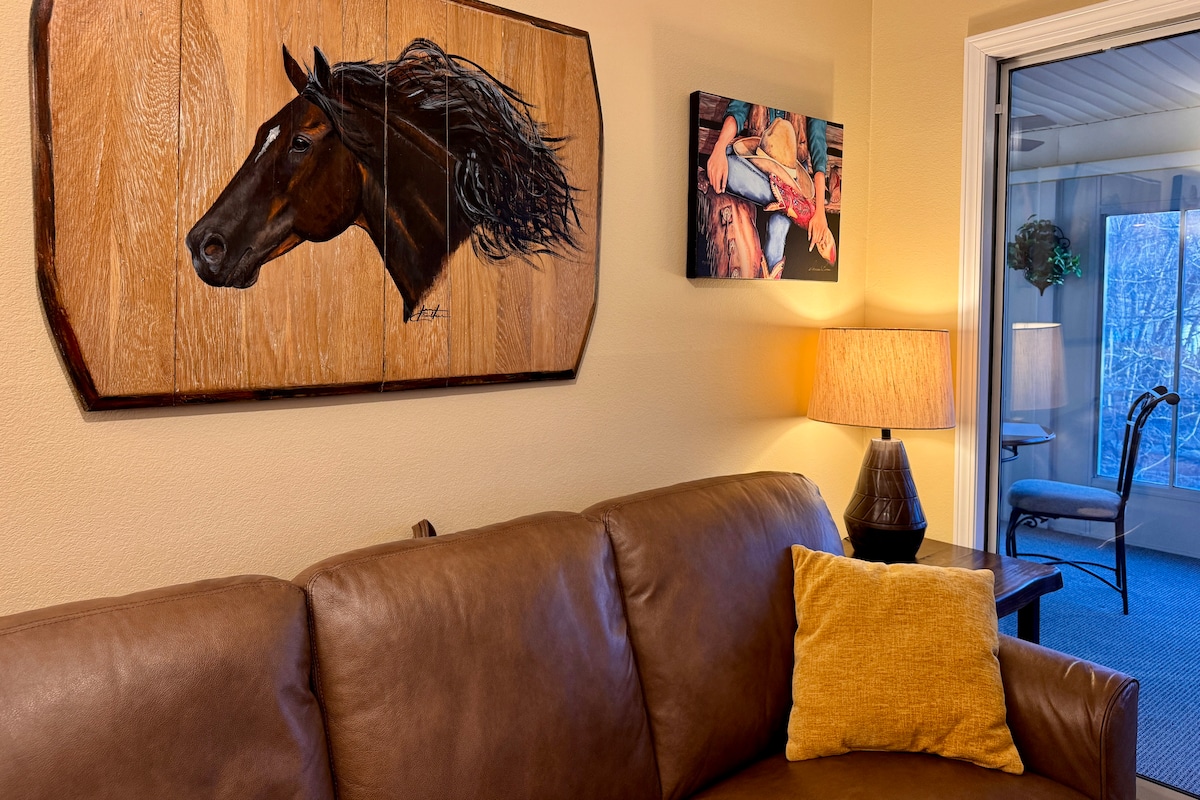 It's time to get away! This King Bedroom escape is just what you need to reset. Relaxing patio overlooks the 12th hole of Ledgestone Golf Course in Stonebridge Resort. ▪ One of 3 pools in the resort is just a few steps outside your door ▪ Play a round of golf on site at the Ledgestone Championship Golf Course - the best public golf course in Branson ▪ On-site restaurant - great patio with great views! ▪ Street Level Condo - No Stairs!! ▪ 5 minutes to Silver Dollar City
