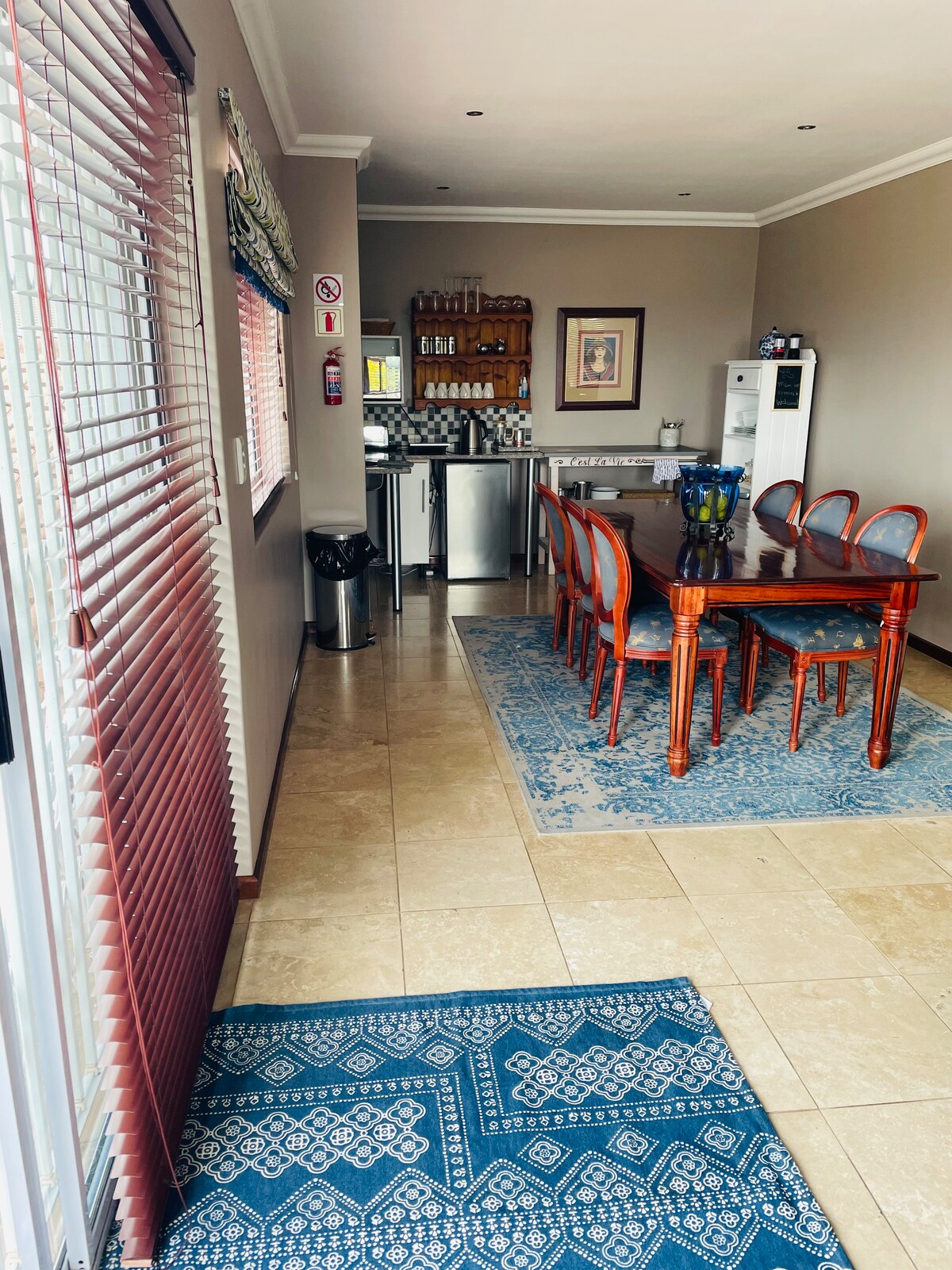 63 平方公尺的大型私人公寓,裝潢精美。獨立入口。免費不限量快速光纖WiFi。電動門後面有安全的停車位。配有4K DSTV套餐的平板電視,配有音響吧。體驗CT,就像在家一樣。 整套樓上公寓,配有臥室(配有空調)的標準雙人床、浴室、配有八人座桌小廚房的餐廳和客廳(配有空調)、自己的壁爐以及可欣賞景的大陽臺