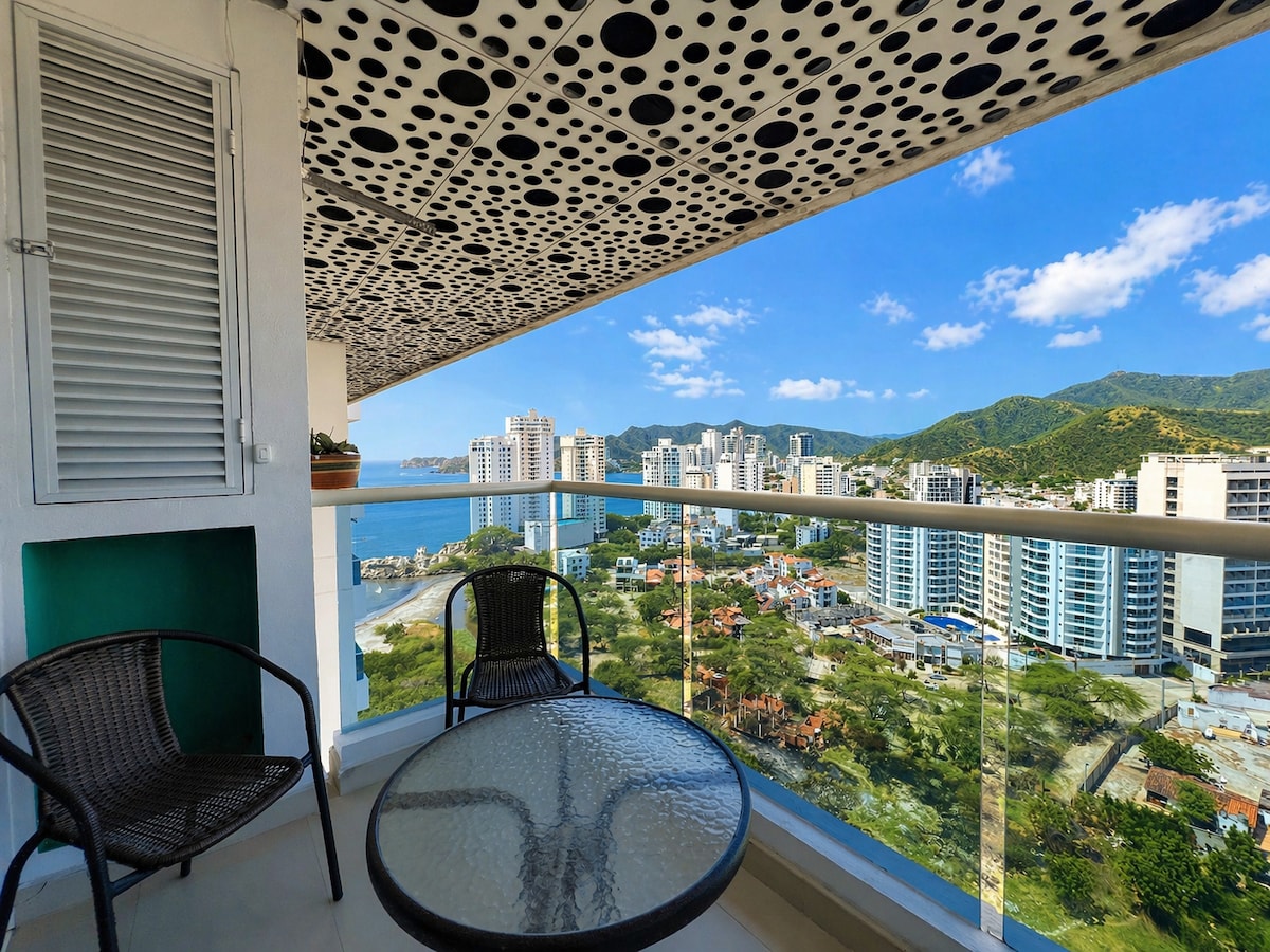 Enjoy a unique stay in this modern ocean-view apartment located in the exclusive EIRA building, one of Santa Marta’s best areas. The apartment includes high-speed Wi-Fi, Smart TV, air conditioning, a fully equipped kitchen, balcony with an amazing view, and a comfortable space to relax or work. The building offers rooftop pool and jacuzzi, and is steps away from: Historic Center, Marina, Santa Marta Club, the Bay, Stores, Cafes and Restaurants. El Rodadero is also only 10 minutes away. Book now!