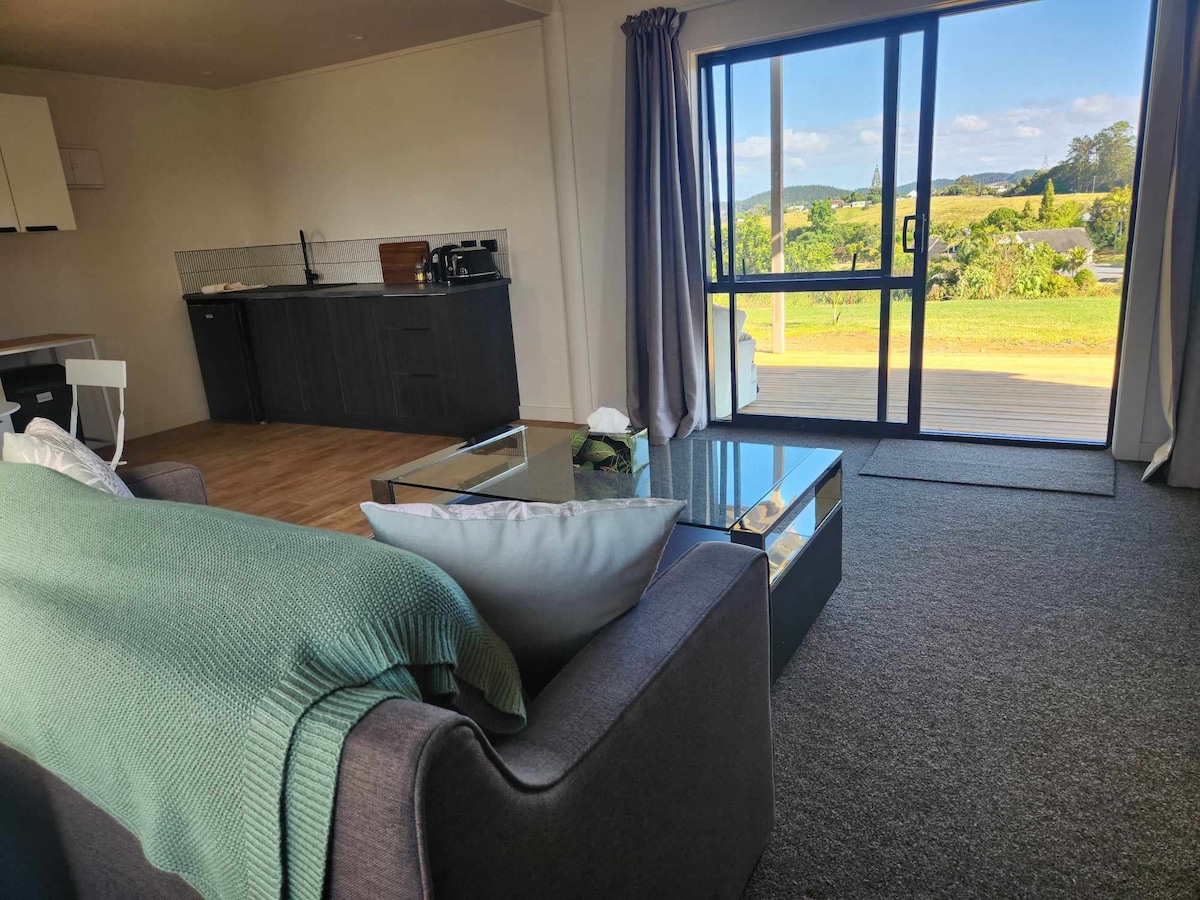 Studio 8 is a private studio with a stunning view of the apricot sand beaches and lagoon of beautiful Cable Bay. Relax and unwind while you take in the view of the sea all the way across the bay to the KariKari Peninsula. Come and relax in our private studio, suitable for 1 person or for a couple. There are more than 13 eateries all within 5 minutes drive away. A private walkway down to the beach. Plus the best Ice Cream shop within walking distance! Perfect location to explore the Far North.