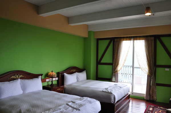 這個房間位於整棟建築物的二樓201房,色彩以地中海藍作為基調,有兩扇對外窗戶,窗外是樹景與山壁,偶有松鼠探訪。 房間內有隔一個和室小空間,可以泡茶、看書、放鬆。 此房和室區域最多可以追加兩個床位。所以此空間最多可容納4人。加床費用$700/人。