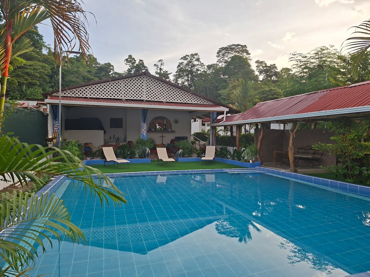寬敞、全新、現代化和舒適的單位 每個房間都有獨立入口和空調。 大泳池。室外和室內淋浴間,提供熱水。 設備齊全的廚房。騎自行車穿越叢林前往海灘僅需5分鐘。戶外露臺。 在叢林天堂中享受現代便利。 沉浸在青蛙和蟬鳴的舒緩聲音中,醒來時感受巨人和猴子的能量。 室內熱水淋浴間、室外淋浴間、瓦斯爐、每扇窗戶的紗窗等設施。