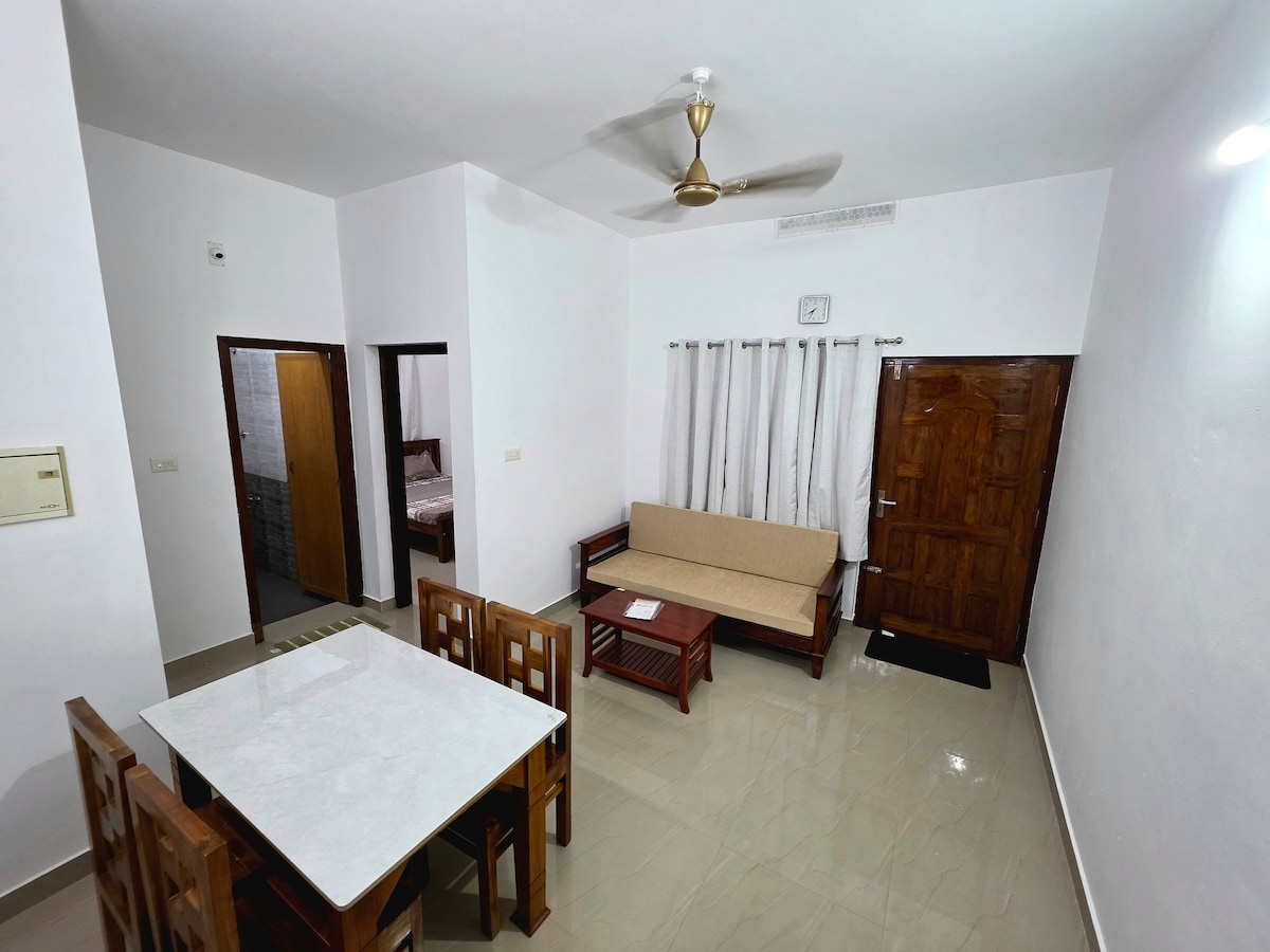 歡迎來到我們位於Kannur Pallikunnu的寬敞頂層3BHK民宿,距離著名的Mookambika寺廟僅幾步之遙。 非常適合家庭、婚禮賓客和寺廟遊客,設有3間附屬睡房、大廳、廚房和可欣賞自然景觀的陽台。 享受泊車、24小時供水、閉路電視、WiFi和適合寵物入住的旅居。 步行即可抵達寺廟,靠近醫院、學校和婚禮廳。 僅限日租,讓你有家的感覺,與摯愛一起留下難忘的回憶。