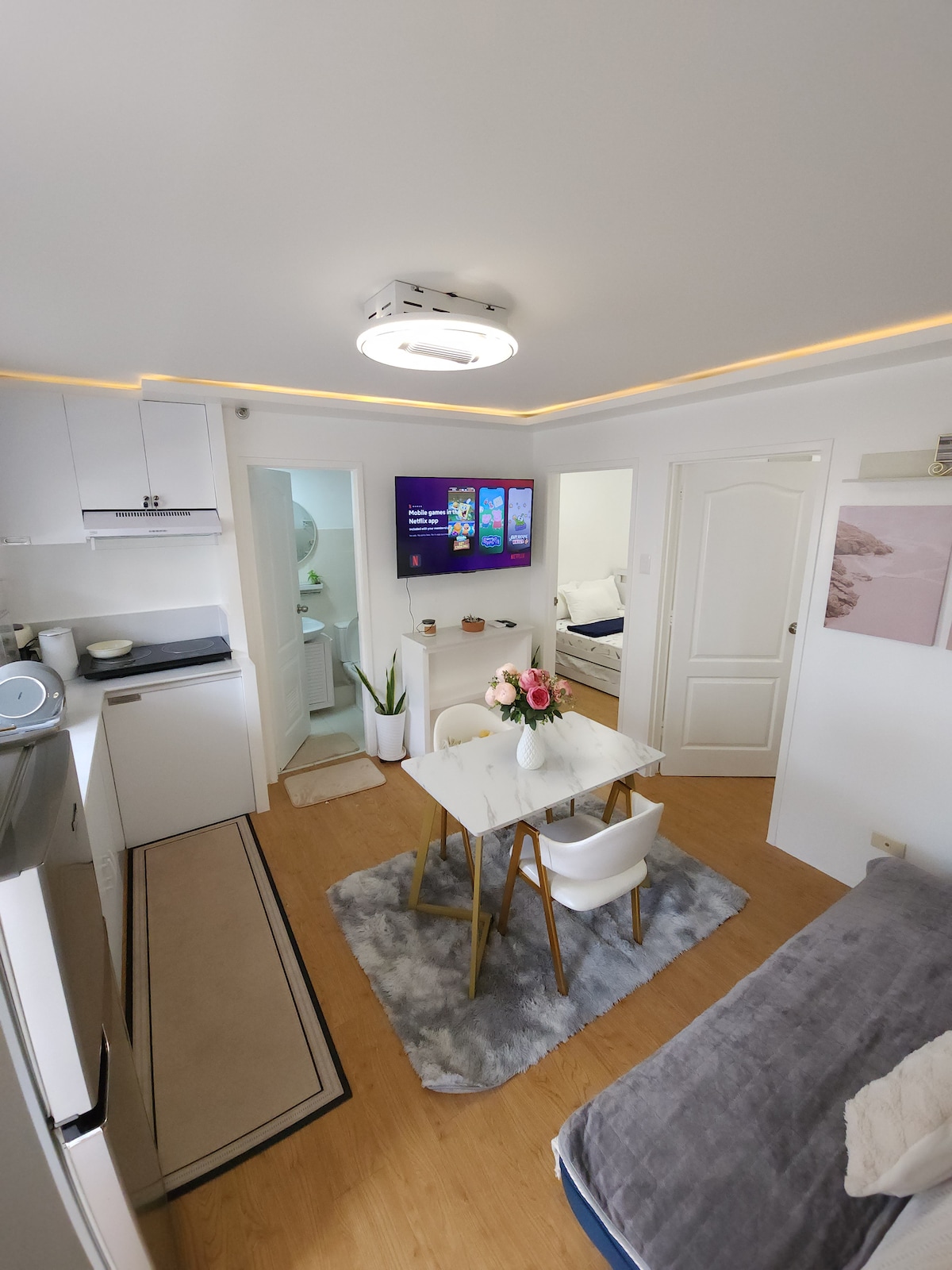 Welcome to our centrally-located haven away from home! You can enjoy the flexibility to effortlessly navigate the city's highlights and experience the perfect blend of comfort and convenience during your stay. Our studio unit is fully-furnished, equipped with: >WiFi 200mbps >Air Conditioner >Full bed & pull out >Wardrobe >Work station >Dinning table >Fridge with freezer >Microwave >Smart tv >Rice Cooker >Water heater >Induction cooker >Basic cooking utensils & cutleries >Shower heater