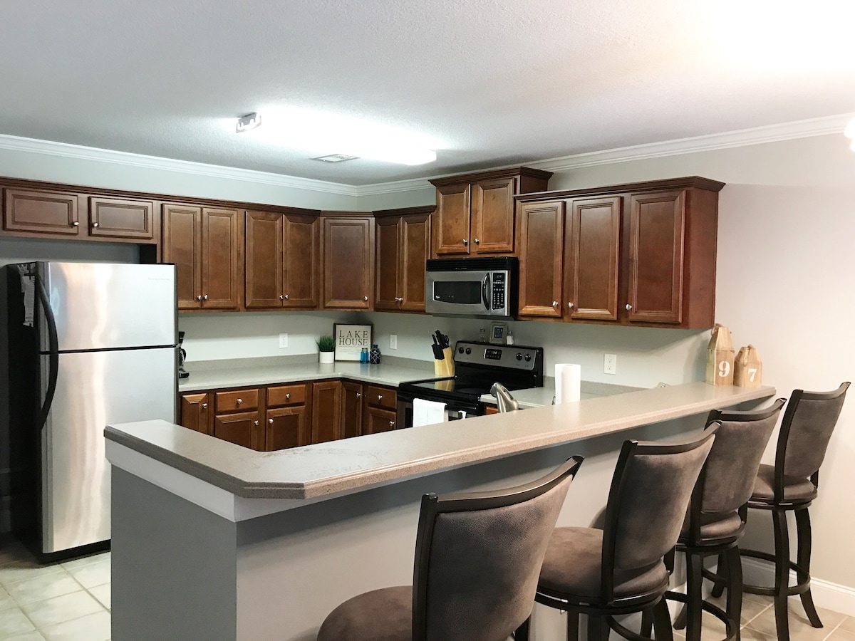 馬丁湖夏季度假或GAMEDAY公寓! ! ! ! ! 歡迎半長期租賃和短期(週末)。 可使用船滑梯和美麗的湖景。 這間3間臥室3間浴室寬敞,可供8人舒適入住,配有加大雙人牀、加大雙人牀、雙人牀和一套上下舖(適合兒童)。 用餐區可容納十( 10 )個座位,起居區配有65英寸掛載電視。 如果湖泊不夠,公寓有帶有趣滑梯的社區泳池。 距離阿拉巴馬州奧本僅30分鐘路程。