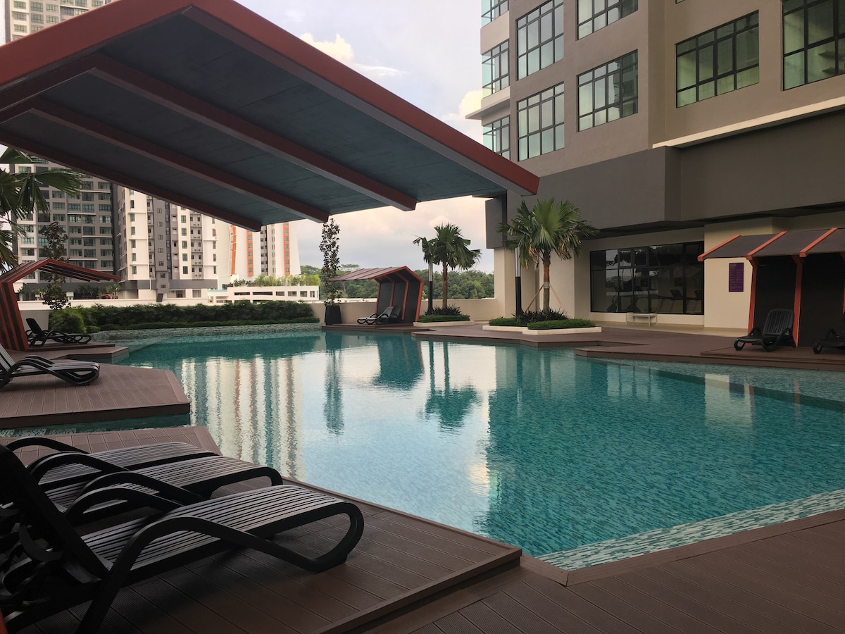 ✨ WELCOME! 🚗 Parking: 2 free indoor spots + visitor parking 📍 Location: Heart of Cyberjaya 🌿 Comfort: Peaceful environment with beautiful views & strong WiFi 🛡️ Security: 24-hour security 🏊♂️ Facilities (6 AM – 10 PM, shared) Tower 1: Level 40 Rooftop Pool Tower 2: Level 10 Gym, Sauna, Squash | Level 38 Rooftop Pool Access between towers via Level 10 (playground area)