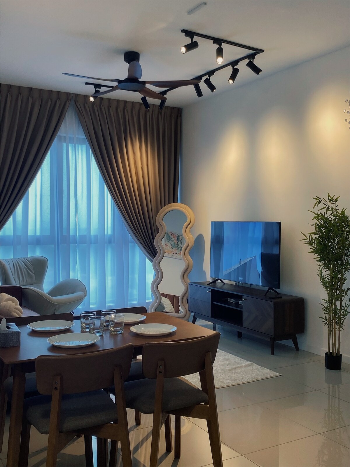 免費停車位 專屬且時尚的民宿,從頭開始設計和建造,將真正激發前往賽城(Cyberjaya)旅行者的感官。公寓配有 100mbps 5G WiFi 和專屬 Netflix 帳戶,專為來工作和放鬆的人而設。Tamarind Suites還為遊客提供了許多活動,包括設備齊全的健身房、無邊際泳池、商店、餐廳和咖啡廳。