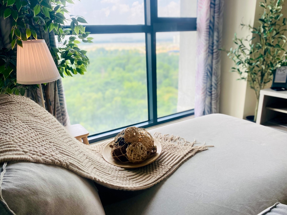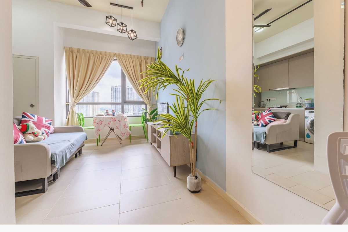 舒適寬敞的公寓,景觀迷人。我們的房源位於22樓,可欣賞美麗的城市和山景,最多可容納10位房客。 非常適合商務旅客、家庭住宿和希望在放鬆的環境中與孩子建立聯繫的父母。 位於富崇市中心,方便前往餐廳、電影院、便利商店、大賣場、LRT、IOI購物中心、Sunway Pyramid、Sunway Lagoon、Pavilion Bukit Jalil等地。