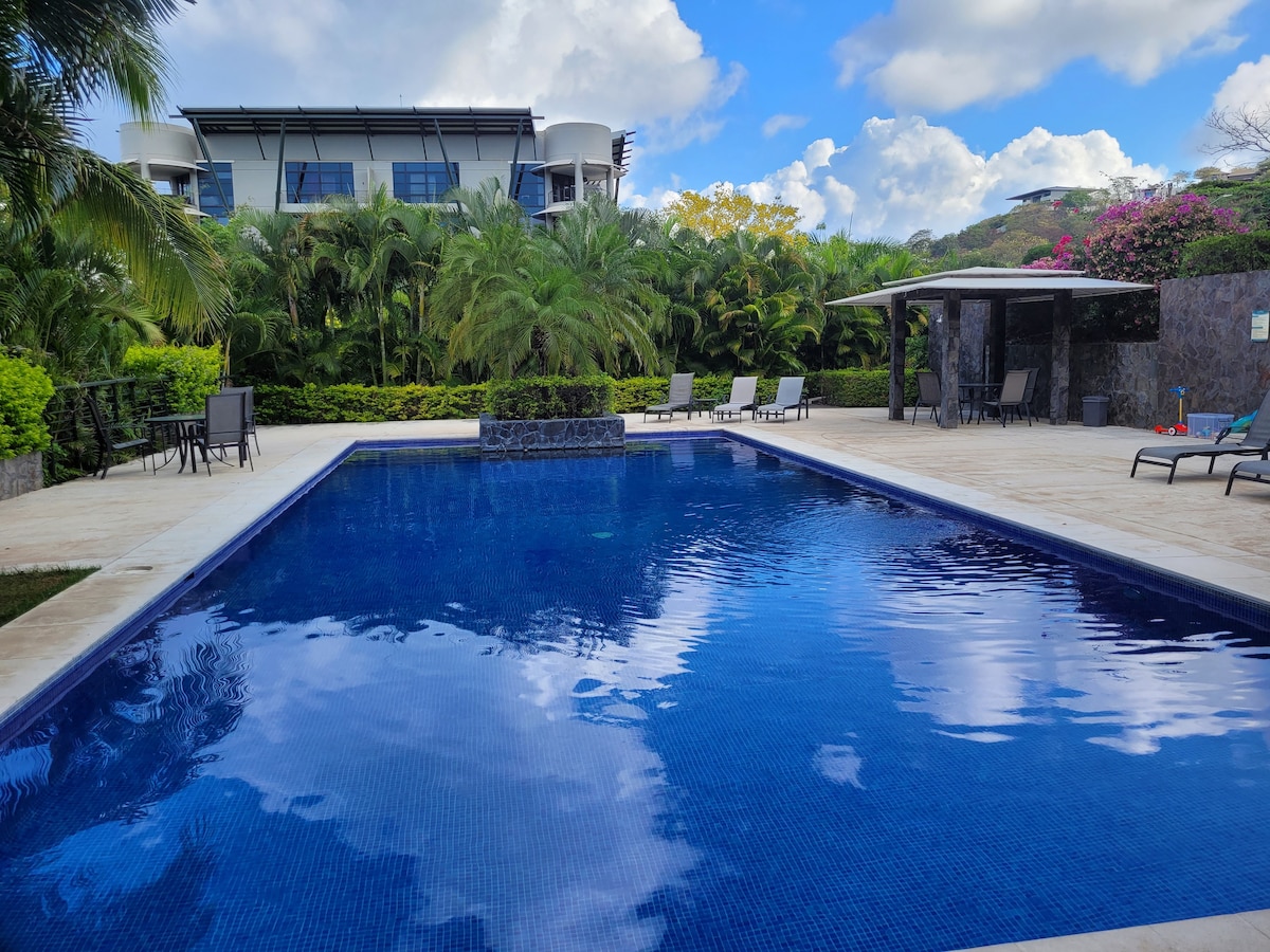 Green Villas步行10分鐘即可抵達城鎮,步行15分鐘即可抵達塔馬林多(Tamarindo)或蘭戈斯塔(Langosta)海灘。 此公寓位於二樓,有1間臥室、客廳有沙發床和空調、1間浴室、設備齊全的廚房、毛巾、WiFi和停車位。 這是一個私密安靜的區域,有8套複合公寓,共用美麗的大型公共泳池、涼亭和燒烤區域 此外,靠近超市、藥店、餐廳、紀念品等,同時我們遠離噪音。