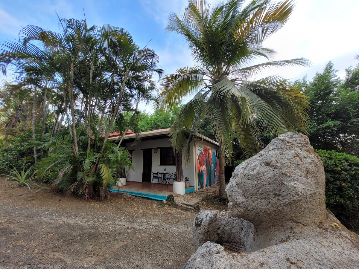 Green Villas步行10分鐘即可抵達城鎮,步行15分鐘即可抵達塔馬林多(Tamarindo)或蘭戈斯塔(Langosta)海灘。 此公寓位於二樓,有1間臥室、客廳有沙發床和空調、1間浴室、設備齊全的廚房、毛巾、WiFi和停車位。 這是一個私密安靜的區域,有8套複合公寓,共用美麗的大型公共泳池、涼亭和燒烤區域 此外,靠近超市、藥店、餐廳、紀念品等,同時我們遠離噪音。