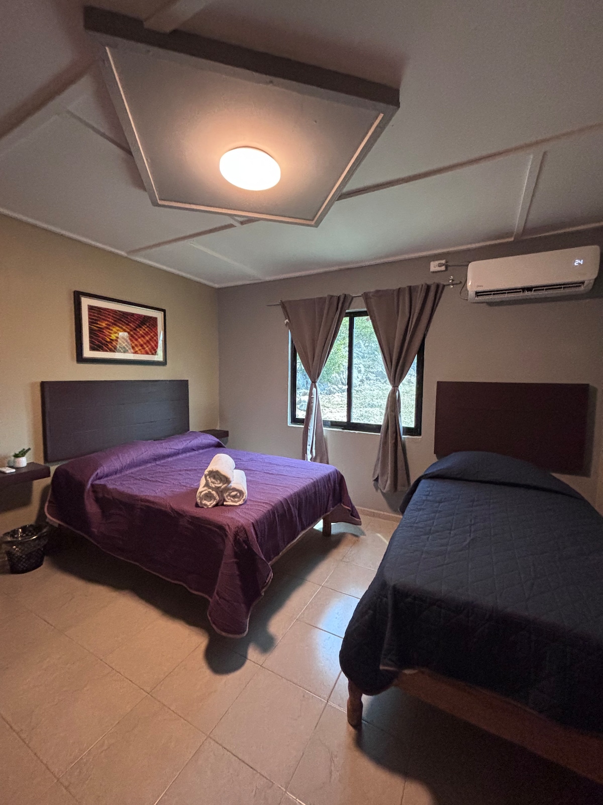 excelente ubicación, a solo dos cuadras del centro de Tamasopo, cómodo, práctico y muy accesible, ideal para descansar después de un día de aventura en la Huasteca. Además, ofrece un ambiente seguro y tranquilo, ya que se encuentra dentro de un pequeño hotel, brindándote mayor privacidad y confianza durante tu estancia. Perfecto para quienes buscan comodidad, ubicación y tranquilidad en un solo lugar