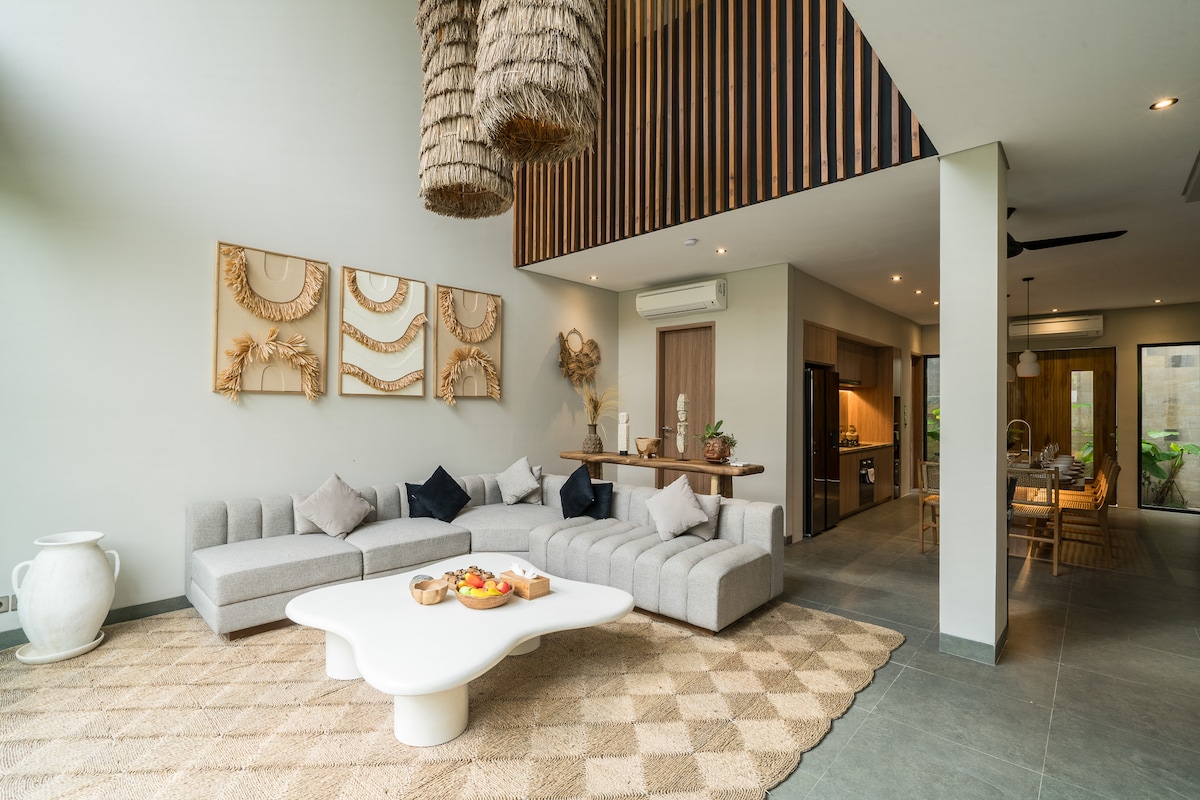 歡迎來到普拉納公館—一座坐落在烏布鬱鬱蔥蔥的寧靜之地的全新現代優雅度假勝地。這棟三層樓住宅專為欣賞精緻生活的人士而設計,將建築藝術的精湛技藝與峇裡島的寧靜氛圍完美融合。從宏偉的 12 公尺下沉式休息室和 4 公尺高的天花板,到義大利大理石廚房和落地式可伸縮玻璃門,每個元素都經過精心打造,旨在創造輕鬆的室內外生活,讓自然與奢華無縫銜接。