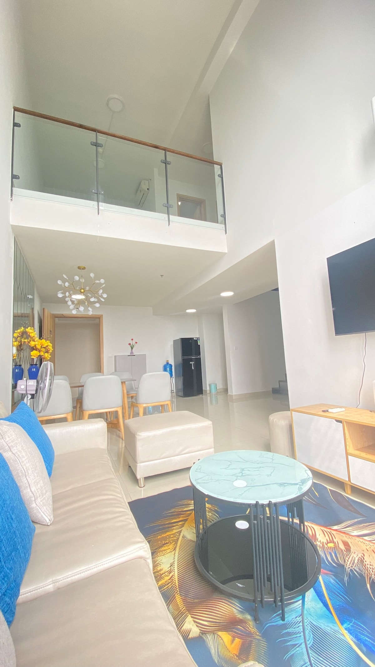 Cozy Penthouse Duplex – Ideal for Families & Remote Work Welcome to our 112m² penthouse duplex in Celadon City, Tan Phu, designed for families and remote workers seeking a quiet and comfortable long-term stay. The home offers a warm living space, strong and stable Wi-Fi, and a quiet work-friendly environment. Parents can relax in the master bedroom, while children enjoy safe bunk beds. Located in a secure, green residential complex with access to a children’s pool and gym.