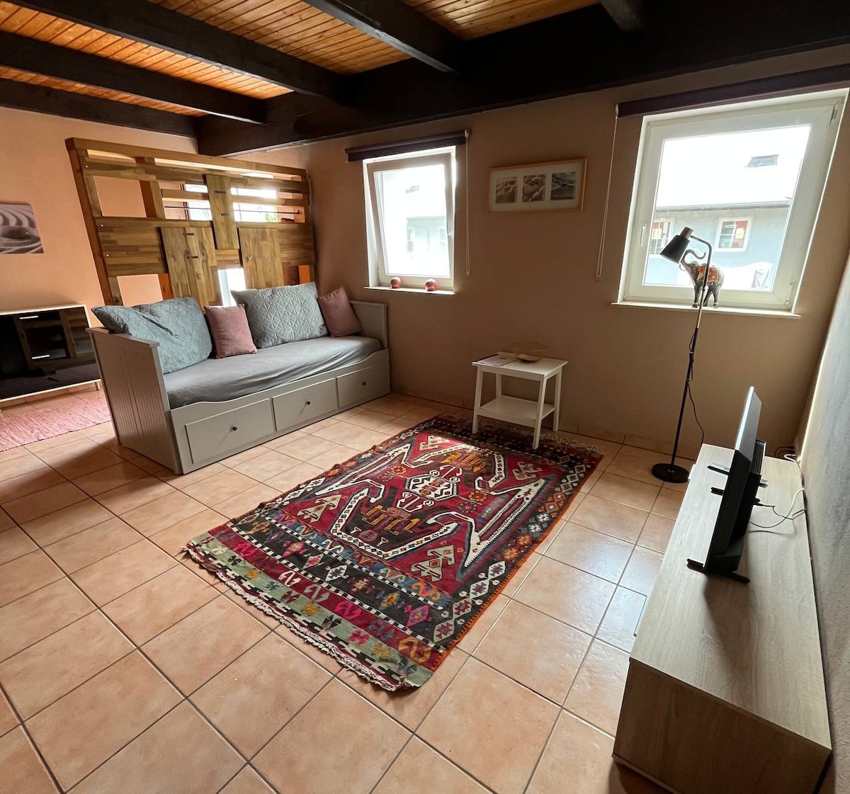 從這個位於中心的住宿,您可以在短時間內到達所有重要的地方。直接位於市中心。地下室可停放自行車 - 附近有免費停車位。Wi-Fi - 吹風機 - 電視機一應俱全。獨立房間內有雙人床,可供 2 人使用。可額外提供可供 2 人使用的大沙發床。提供洗衣機 + 毛巾和床單(附枕頭套和枕頭)。