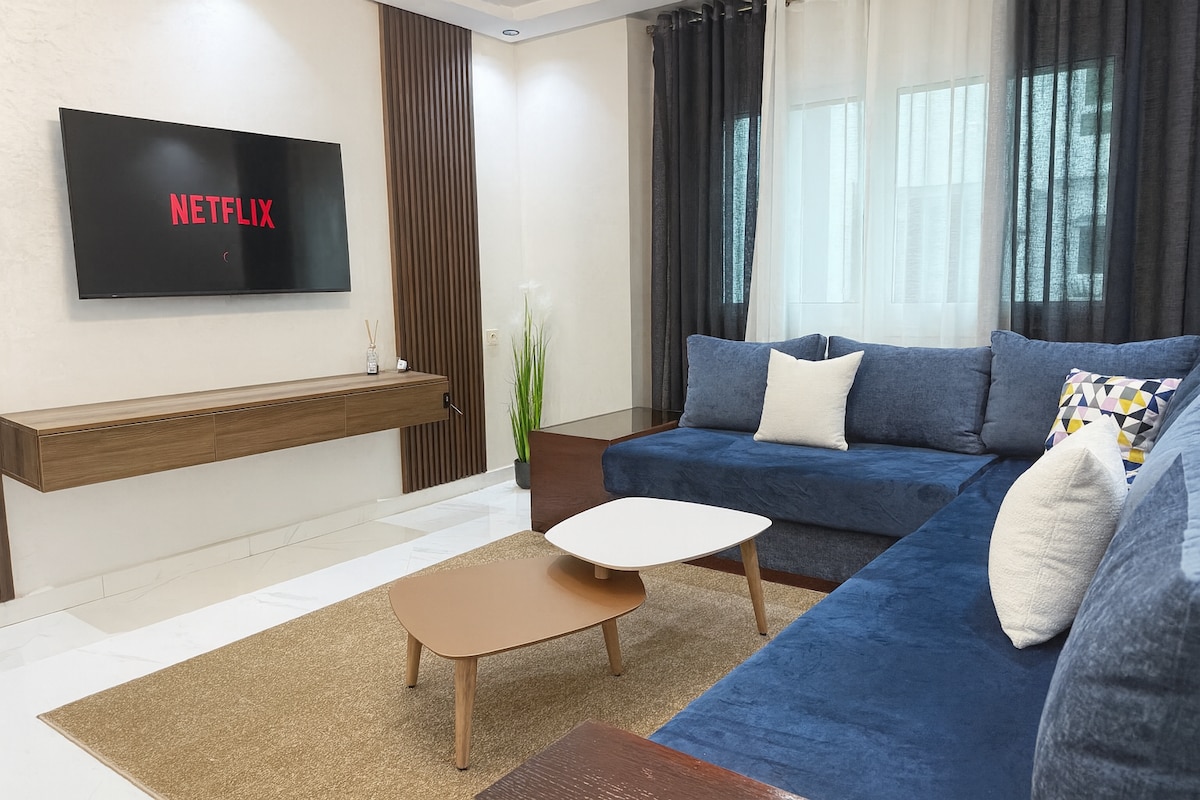 公寓採用現代摩洛哥風格,位於中心區域,靠近海灘和最熱門的景點。 *此房源有2間臥室( 1張加大雙人床/2張單人床)、2間客廳、浴室和廚房。 *距離海邊3分鐘車程,距離火車站3分鐘,距離Ibn Batouta商場4分鐘,距離Malabata商場5分鐘,距離Tanja Marina Bay和夜生活區4分鐘,距離港口9分鐘,距離Medina和Kasbah 12分鐘。 歡迎來到HomeDarna City-Center。
