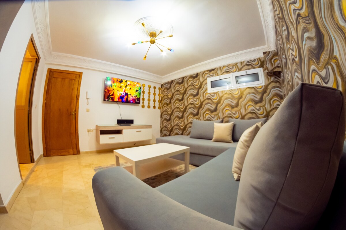 Bienvenue à notre appartement à la corniche de Malabata, Tanger! Deux chambres, salon, cuisine équipée, salle de bain, et WC séparé, tous agrémentés d'une connexion Wi-Fi. À proximité, découvrez une large série de cafés et restaurants, ainsi que la magnifique Marina Tanger Bay. Votre sécurité est assurée dans cette résidence fermée avec agents de sécurité, caméras, et parking souterrain. À 7 minutes à pied de la gare et 3 minutes en voiture, cette escapade promet confort et proximité.