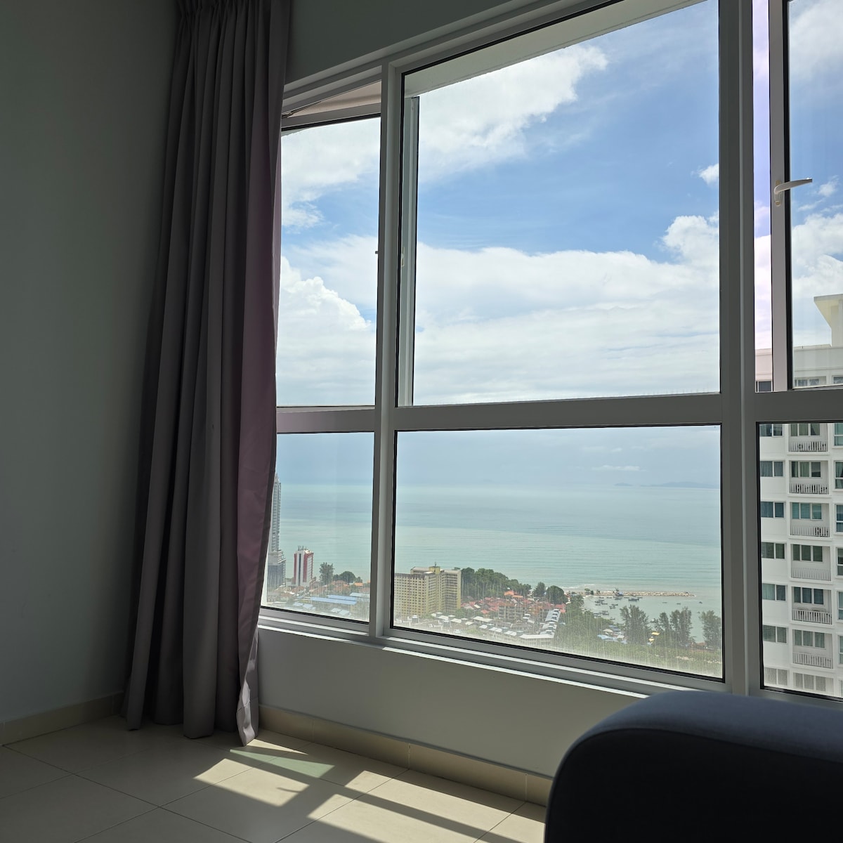 *檳城的最佳位置,新關仔角,第一旅遊目的地 *一個雙層角落單位 *令人驚嘆的高樓層日出海景 *日本設計師設定,配備全套設施 *智慧電視 * 100Mbps WIFI *在臥室、客廳和餐廳欣賞令人驚嘆的日出 *周圍有酒店、購物中心和各種當地餐廳 *免費1個室內停車場 *設施包括室內泳池、健身室和天空休息室 *放鬆的海濱漫步