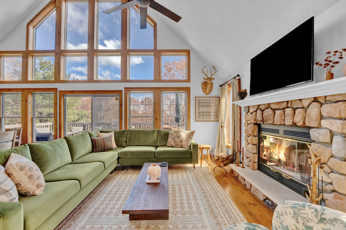 歡迎來到High Pass Lodge!新翻修,位於駱駝峰山頂上,步行即可抵達滑雪場。室內溫水泳池、桑拿房、按摩浴池等,供房客享用(包含在住宿費用內)。靠近水上公園、大波科諾州立公園、釀酒廠、賭場、波科諾賽道、購物中心、餐廳和更多適合任何季節的活動! 在烤肉時欣賞露臺的壯麗景色,或在客廳壁爐前舒適地享受Roku電視。