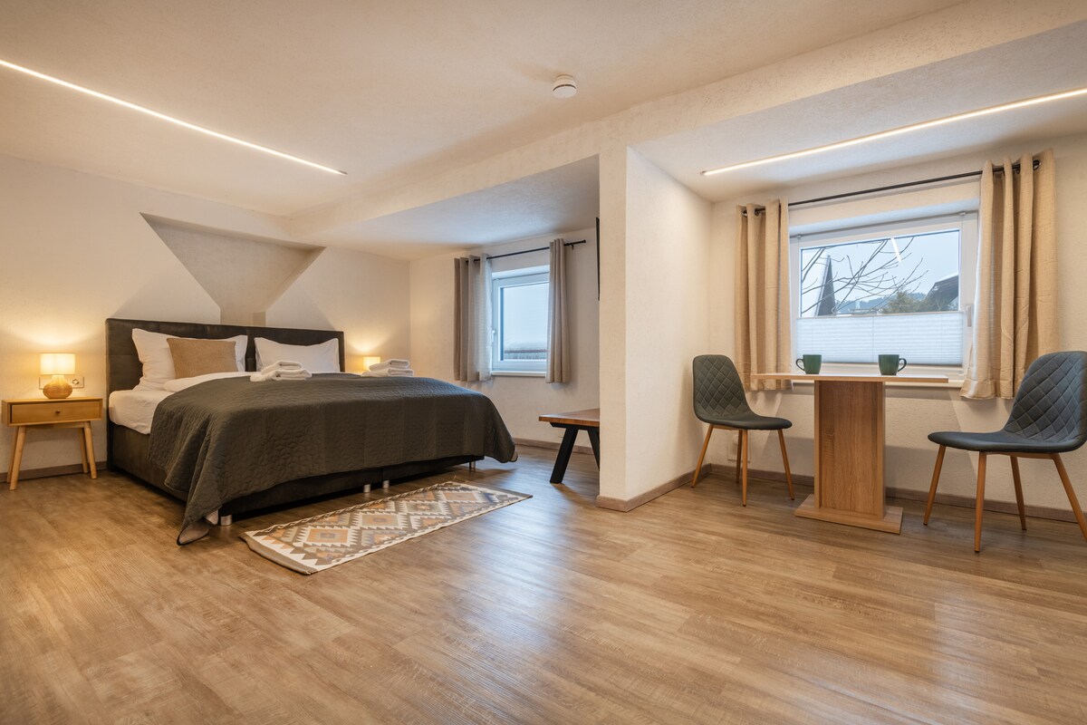 Our bright, charming apartment in Pfronten accommodates up to 5 guests and offers a spectacular view over the rooftops of Pfronten and the Allgäu mountains. Ideally located for exploring Neuschwanstein Castle as well as numerous ski and hiking areas. Start your day with breakfast on the balcony while enjoying the panoramic mountain views – the perfect retreat for nature lovers and anyone seeking relaxation.