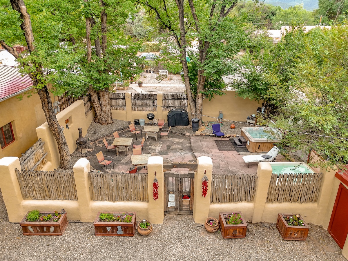 在Taos Lodging ,我們為您提供8個甜美而獨特的小屋,坐落在安靜的Brooks Street上陰涼而僻靜的地方。 Chamisa #6是我們三層公寓的最後一個單位,最靠近按摩浴池,配有設備齊全的廚房和用餐區,門廊有遮蔭的座位,可輕鬆前往按摩浴池。 非常適合狗入住,可容納4人入住- 900平方英尺。 我們的小屋在臥室區域有木地板和一些地毯-如果吱吱作響的地板會打擾您或您的睡眠伴侶-我們不是您的落腳點。
