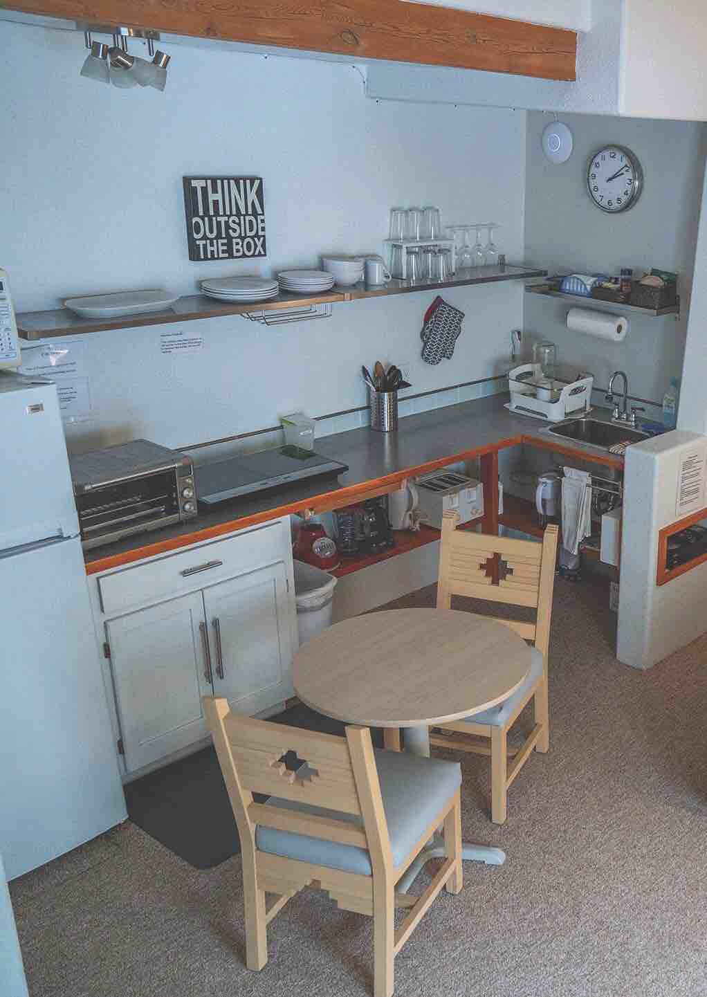 PERFECT SPOT FOR A GETAWAY! A no-smoking, one bedroom retreat-like unit has tons of character. Stroll to the Plaza and restaurants. Enjoy the private patio off the bedroom or the lovely courtyard with calming fountain and many benches. Ideal for reading, thinking or meditation. Many guests have been "working from home with a different view"! One family dog (under 25#) is OK – and you must inquire in advance. The cozy paradise is a combination of the Taos vibe with contemporary touches.