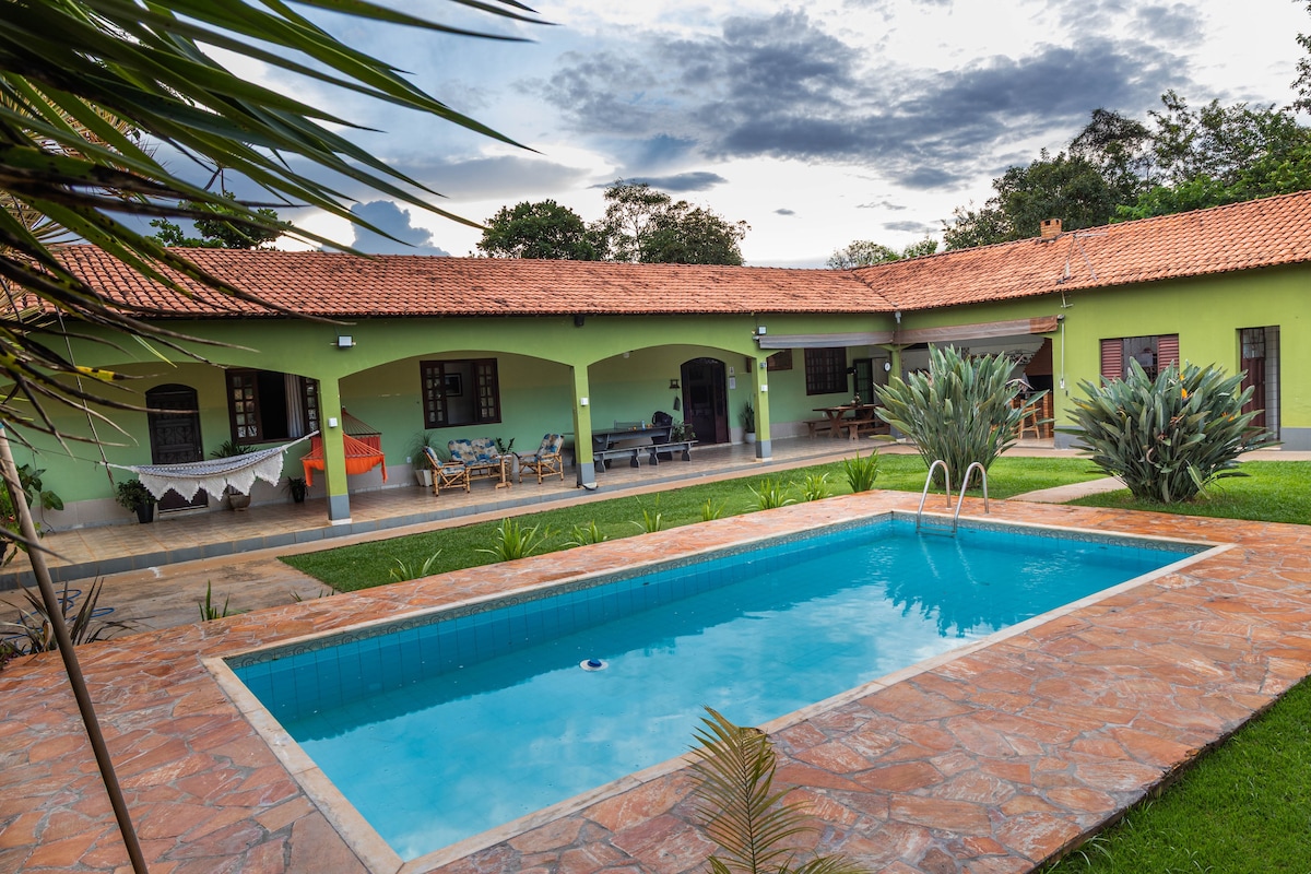 美麗的鄉村別墅,位於Fazenda Santa Amália ( @ fazendastamalia ) ,泳池、燒烤、燃木烤箱,坐落在山頂上,四周環繞著大自然和美麗的景色。 簡單而質樸,可通往小徑、潟湖、河流、海灘和瀑布。 一個超級好的休息和享受家庭和朋友的地方! 3間臥室,其中一間為套房(雙人床)。 其他房間,每間配有2張單人牀。 如有超過16位旅人入住,請與旅居主人確認金額。