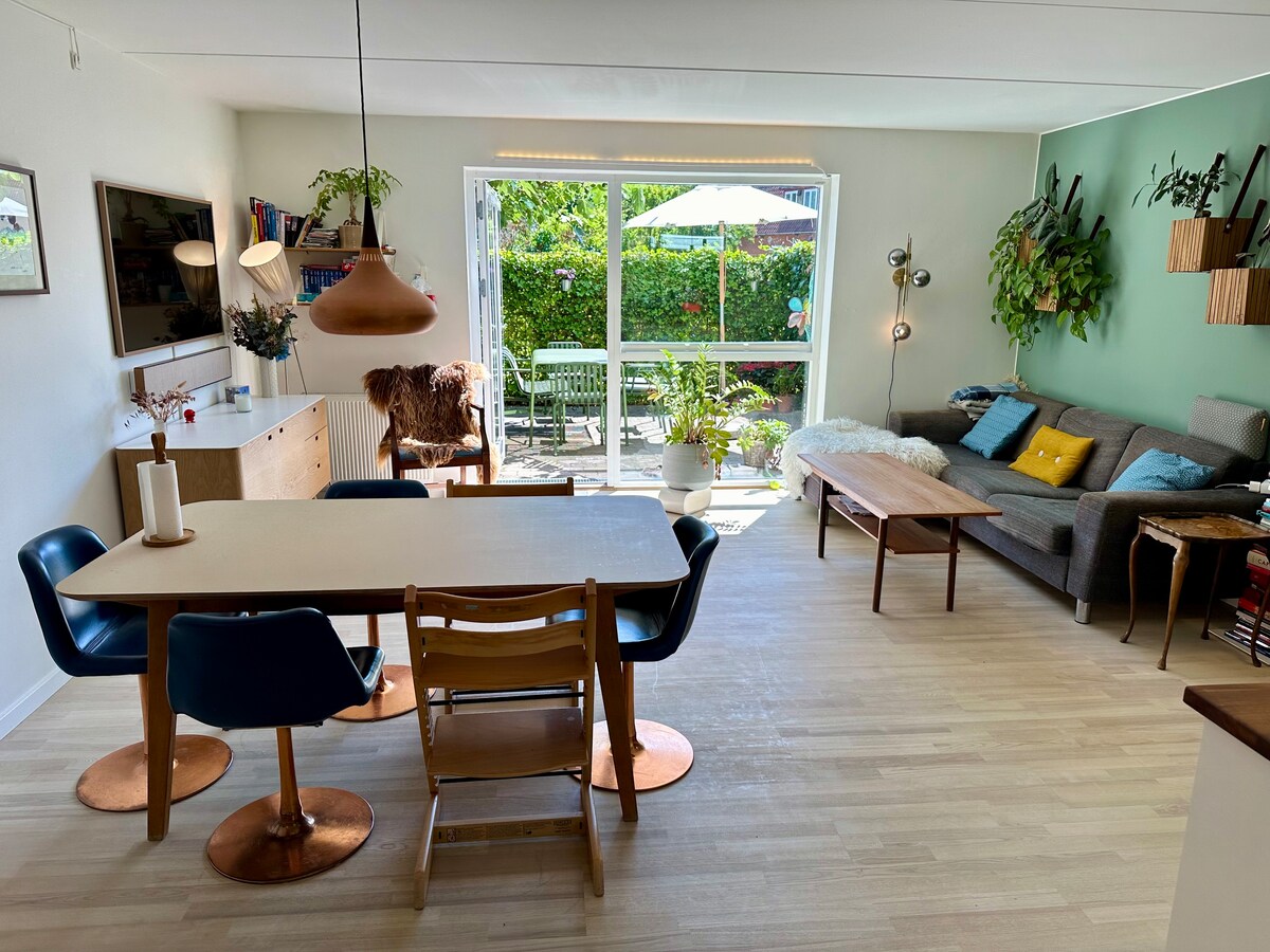 If you would love to experience real Danish "hygge", please be our guests! We have an original and eclectic home with old and new furniture, books, art and objects in one wonderful mix. There is a lovely garden for the spring and summertime with fruit trees and flowers and a wood stove inside for the wintertime. A lovely beach and harbor are a ten minute walk away. Also, you can be in the center of town with the local Metro train in just 15 minutes!