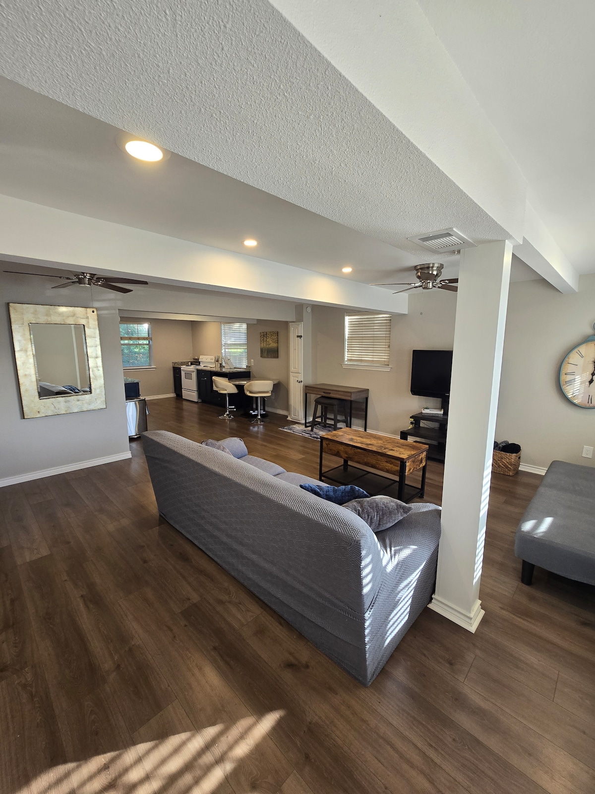 客用套房已徹底翻新,包括全套廚房(即瓦斯烤箱/爐子、冰箱、洗碗機)、洗衣機/烘乾機、電視/WiFi、露臺、帶花園的自然區域和許多其他設施。 我們1963年的牧場房屋佔地0.6英畝,約1/3是您的私人區域/露臺,包括一條自然小徑。 這裡是享受戶外、放鬆和探索達拉斯沃斯堡國際機場(DFW)地區的好地方。 距離達拉斯或英尺僅幾分鐘路程的理想位置。 物超所值。您需要的一切,讓您感受像家一般的舒適。