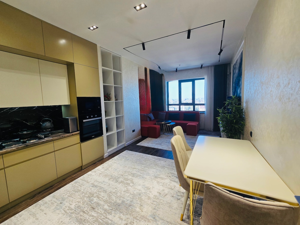 公寓是全新的、幹淨的、時尚的室內裝潢。配備了博世電器和等離子電視。它位於新住宅羣「Nova Garden」。 領地已關閉,有衛兵、停車位和噴泉。步行即可抵達許多咖啡廳和餐廳、超市「Mega Planet」、市場「Yunusabad」、電影院「Azia」。 距離最近的地鐵站不超過2公裏。塔什幹的主要景點是電視塔,距離這裡不超過3公裏。