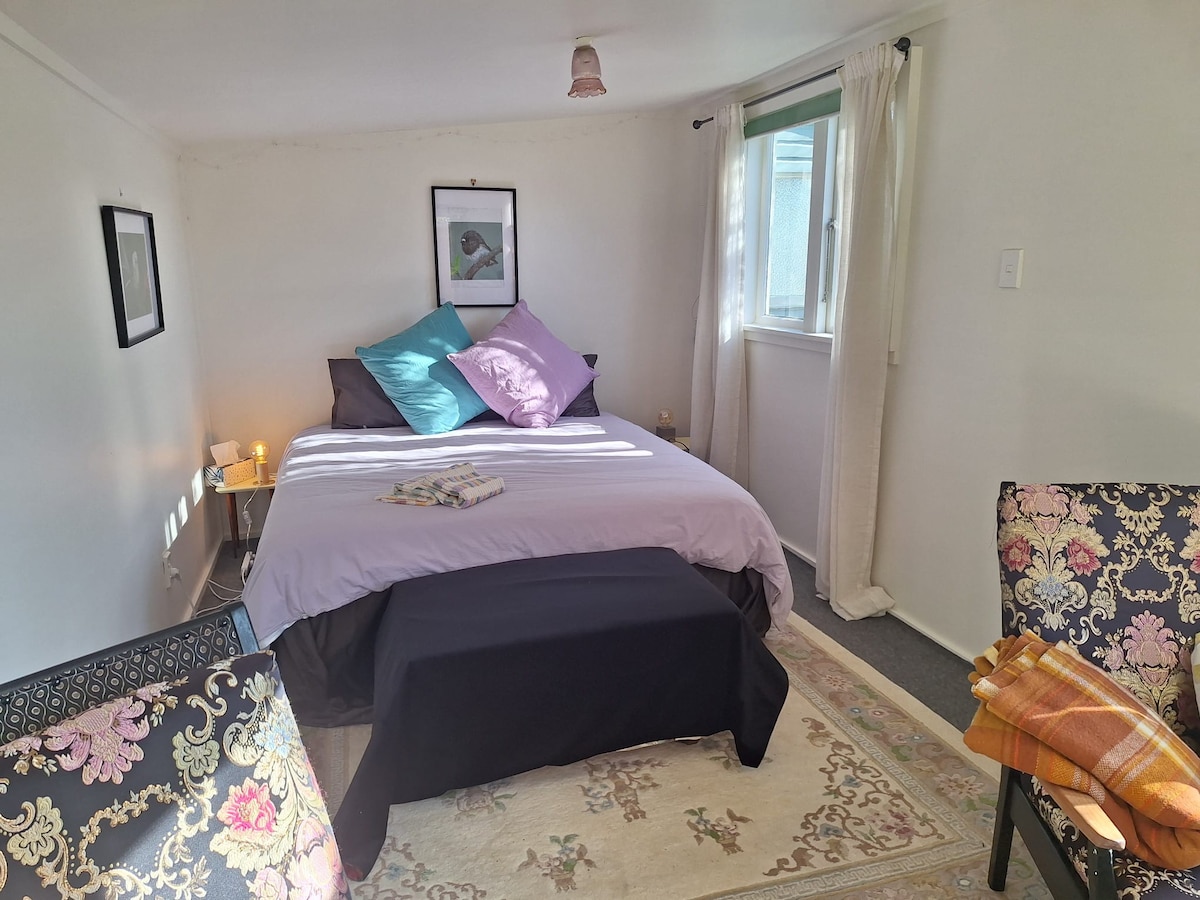 遠離世界的世界-距離灰鎮僅5分鐘路程。 坐落在一個美麗的花園中的一個小型的有機農場上。 超級舒適的牀,時尚,中世紀的裝飾。 在鳥鳴中醒來, 在室外浴缸欣賞星空,同時聆聽Ruru的叫聲。 泳池邊的Loll或借用自行車去探索。 免費早餐,包括美味咖啡、自製麥片和水果、手工麵包和麵包。 免費提供散養雞蛋和培根,價格為每人25美元。 開車、熱泵、WiFi和電視。