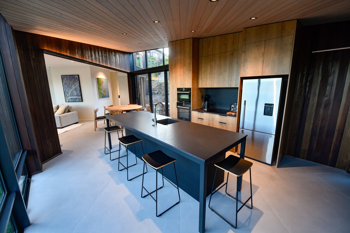 這個由屢獲殊榮的建築師設計團隊Stapleton Elliott設計的新度假屋是一個設備精良的度假屋,是放鬆度假的完美基地。 步行3分鐘即可抵達湖畔,非常適合探險或放鬆身心。 為家庭和團體設定; 2張特大床、1張大床、4張特大單人床、2張抽屜床和3間浴室 Rocket Espresso、蹦牀、特斯拉電動車充電器 步行15分鐘即可抵達湖畔商店 開車15分鐘即可抵達陶波