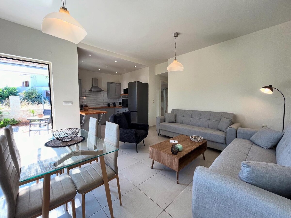 Agave house is new luxury residence with infinity pool(be ready in April 2023).Located in Stalos area in Chania at the foot of a rocky hill surrounded by private land of olive trees. The house is designed in minimal style for tose seeking comfort and pleasure with breathtaking view of the Cretan sea .Τhodorou island ,Chania city and the White mountains . All equipment of the house is charecterized by high quality design.