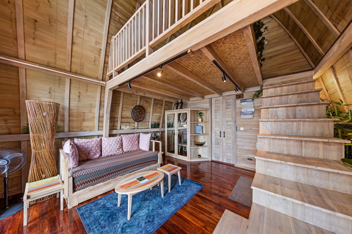 Lumbung Loft別墅是我們精品山坡度假村Karuna El Nido Villas的一部分。 我們位於一座山上,可欣賞令人驚嘆的山景和海景,距離El nido鎮中心不到10分鐘車程,從房源的高速公路步行5分鐘即可抵達Corong Corong海灘。 令人驚嘆的景觀、充足的空間和出色的服務等著房客。 50平方公尺的起居空間,由40平方米的室內空間和10平方米的陽臺組成,等待房客舒適住宿。 +含點餐早餐