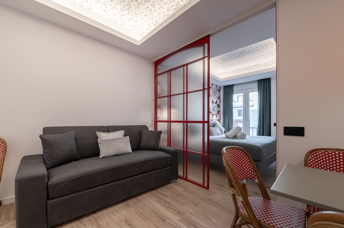 「Vine」公寓位於馬德里市中心,靠近Gran Via ,位於安靜的街道上,新建築內,有電梯。它是受大自然啟發的、明亮和現代化的,有WiFi ,設備齊全,非常靠近餐廳、塔帕斯、地鐵、商店和畫廊。最適合單身、情侶或帶小孩的情侶!歡迎攜帶寵物入住!!! 公寓位於新建築中,配有電梯!設計現代化,有很多綠化,以其名稱為主題,葡萄藤。整套公寓的長度有一扇巨大的窗戶,可俯瞰美麗的私人花園。公寓包括一間配有雙人床的臥室、一個配有單人拉出式沙發的起居空間、廚房和浴室。配有WiFi ,設備齊全,包括洗衣機、電視、空調和Nespresso咖啡機,讓您舒適享受! 公寓是一間單間公寓開放空間公寓,您可以享受一切!公寓內沒有您無法使用或進入的區域! 我們喜歡出租房源,但也尊重房客的隱私!我們會隨時為您服務! 位於Gran Via附近,位於熱鬧的Malasana街區,有各種正宗咖啡館、塔帕斯和酒吧。距離Zara Primark & Mango幾分鐘路程。步行即可抵達皇宮、太陽門和博物館等馬德里最佳景點 公寓距離中央地鐵站Gran Via步行2分鐘。從那裡,您可以乘坐地鐵前往馬德里的任何地方,也可以前往所有火車站,將您從馬德里帶到西班牙的其他地方。如果您開車來,馬德里Barco 1有一個大型停車場,距離公寓僅1分鐘路程。附近還有一個自行車租賃站。 一套水、蘇打水、牛奶、咖啡、茶和甜味劑的接待套件將等待您的光臨:-)