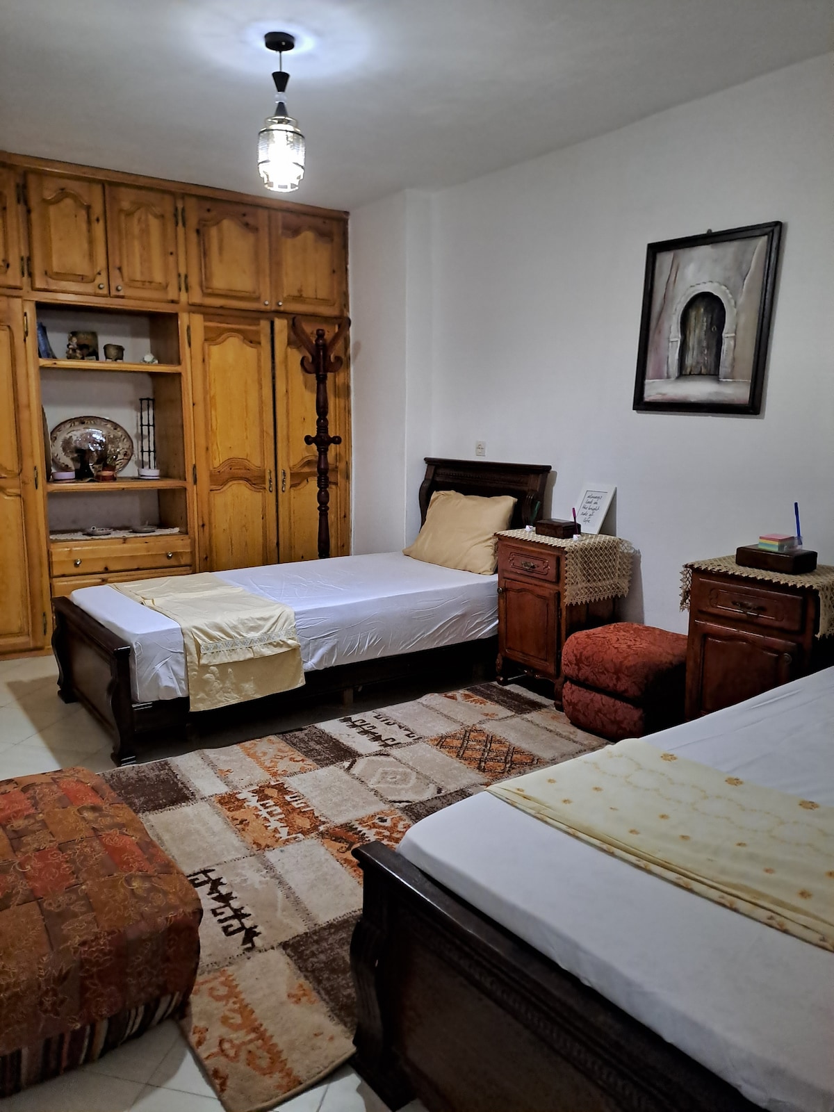 整套房源由漂亮的4間臥室房屋( 4x2人)和平房( 2x2人)組成。 它位於安靜且安全的區域。 您將步行離開房子,只需60米即可抵達拉巴特/哈霍拉最美的海灘。 室外停車場有警衛,可輕鬆容納3輛車。 最後,根據您的要求並根據您的需求,房子裡的女士可以照顧房屋的餐食和/或維護。