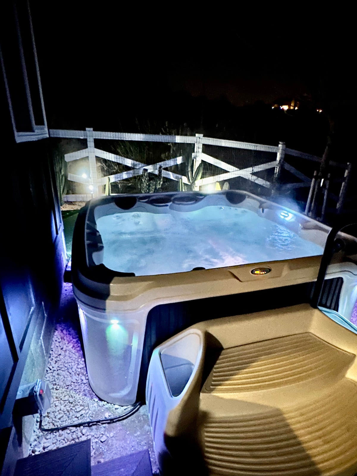在您的按摩浴池中隔離,俯瞰葡萄酒鄉中心的私人葡萄園!這棟小屋的葡萄酒主題裝飾。臥室模擬酒桶房,睡在獨特的葡萄酒箱和酒桶床上。全套廚房和烤肉架,讓您可以自行烹飪美食,或參觀當地的精緻餐廳。 在舒適的私人定制雪松熱水浴缸中,欣賞神奇的星光璀璨的蒂梅丘拉天空。每晚50美元可帶馬匹入住。如果時間允許,當天預訂可享安全駕駛折扣。