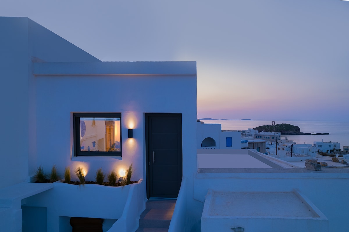 Nested in Naxos Town with stunning views out to the Aegean Sea we offer out guests the opportunity of an exclusive upretentions relaxing experience. Within easy reach from island’s famous PORTARA and Venetian Castle. Our philosophy is to offer first-rate hospitality coupled with unrivaled privacy. Much more than a home our deluxe suite offers supreme comfort combined with elegance style and unique Greek hospitality. it’ s warm minimal lines create a relaxing atmosphere.