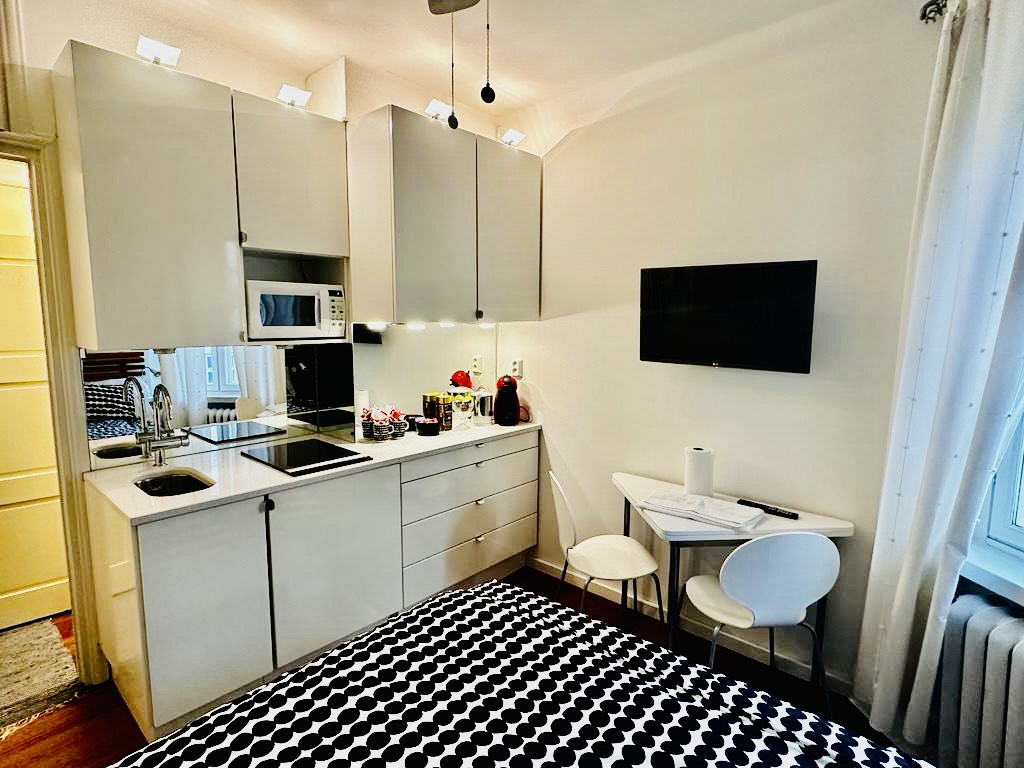 歡迎來到您最近在赫爾辛基市中心翻新的單間公寓! 這個時尚的空間位於黃金地段,距離景點、咖啡廳和餐廳僅幾步之遙。這棟建築的歷史可追溯到 1920 年代,擁有高高的天花板和寬敞的窗台,增添了魅力。 室內提供高速 WiFi、55 吋電視(可收看 Netflix)、吹風機和熨斗等設備與服務。公寓最多可供四人舒適入住。 預訂住宿,享受完美的赫爾辛基都市度假!